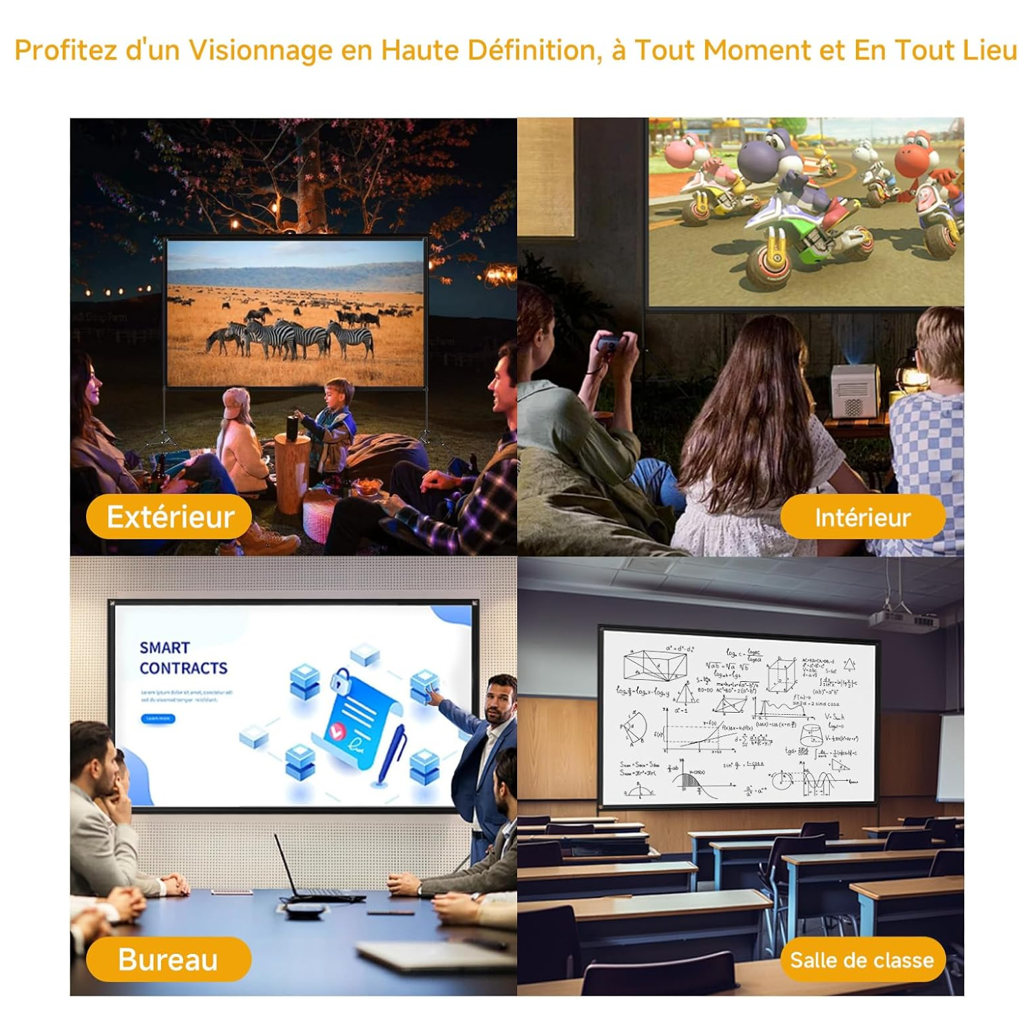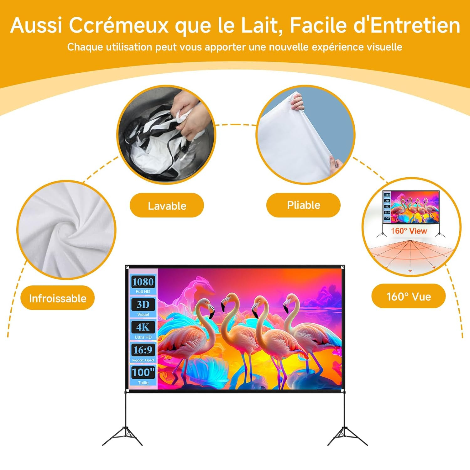 Notre écran vidéo projecteur extérieur est conçu pour transformer n’importe quel espace, qu’il s’agisse d’un jardin, d’un camping ou d’une salle de réunion, en véritable salle de cinéma. Alliant robustesse et légèreté, il répond aux exigences des utilisateurs qui souhaitent une projection de haute qualité sans contrainte d’installation fixe. Sa conception pliable et son sac de transport intégré en font un équipement aussi pratique que performant. Il prend en charge les formats 4K, Full HD et 1080P, garantissant une image nette et fidèle dans toutes les configurations d’utilisation.