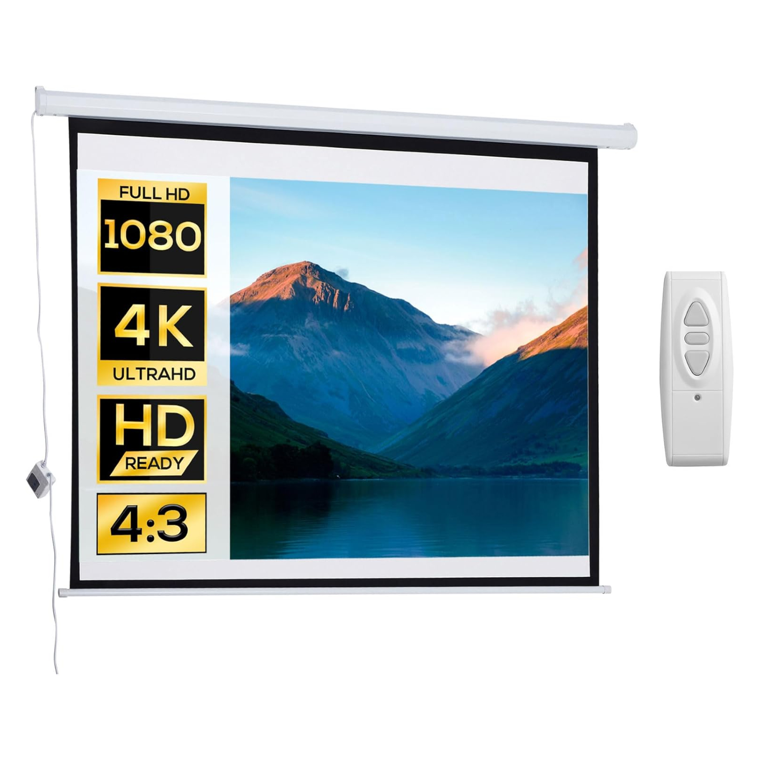 Écran de Projection Motorisé 100 Pouces 4:3 4K Ultra HD pour Installation Murale ou Plafond