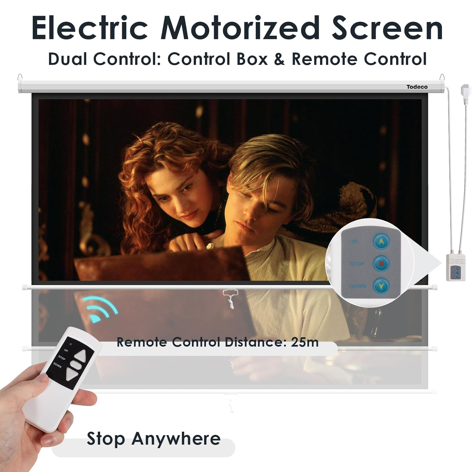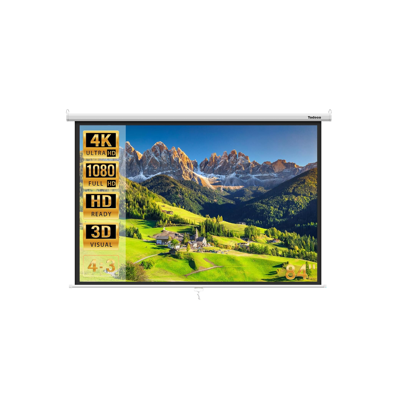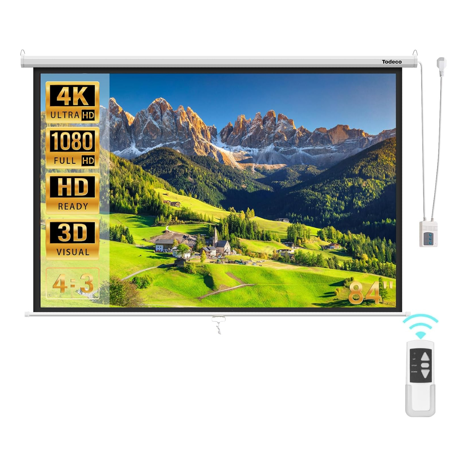 Écran motorisé de projection 84 pouces plafond 4:3 Full HD 1080p compatible 4K avec contrôle RF et installation murale