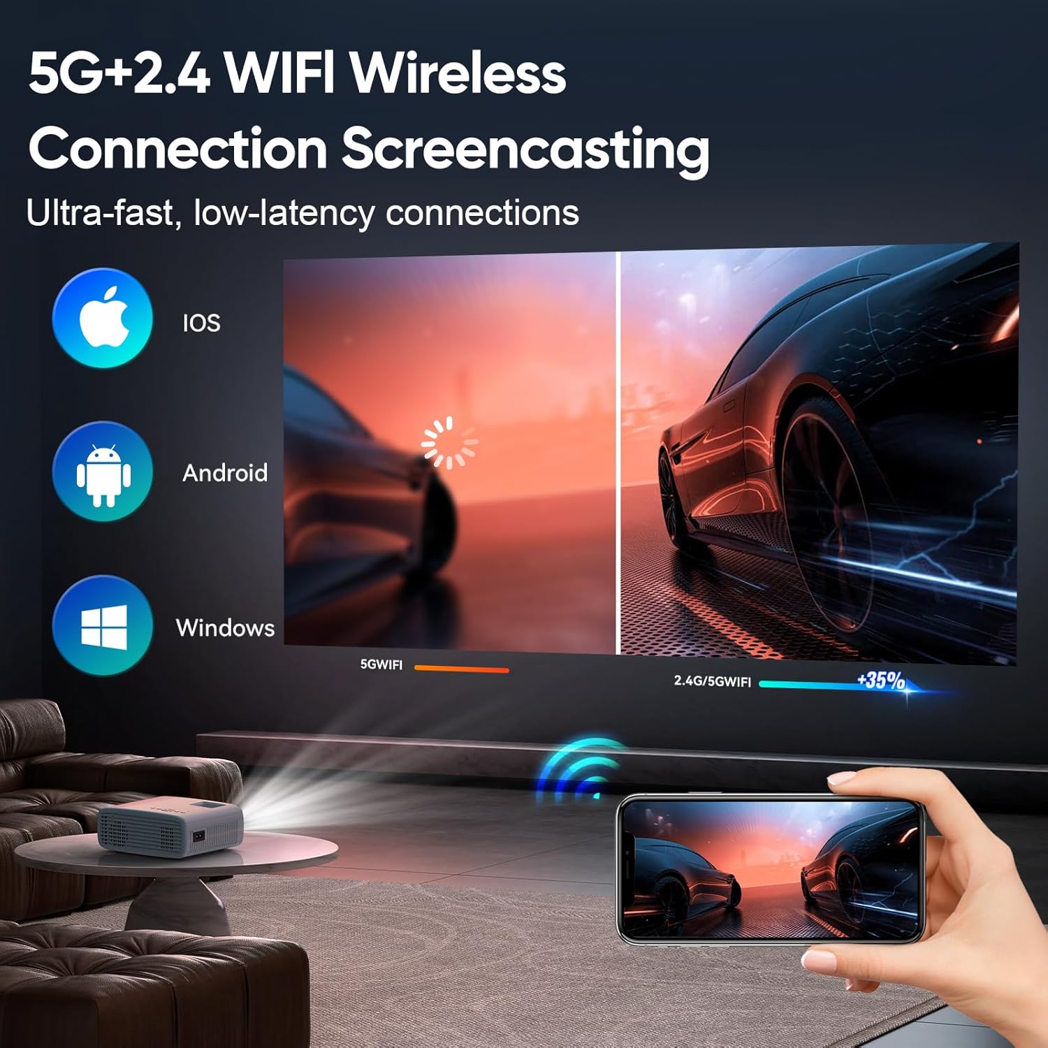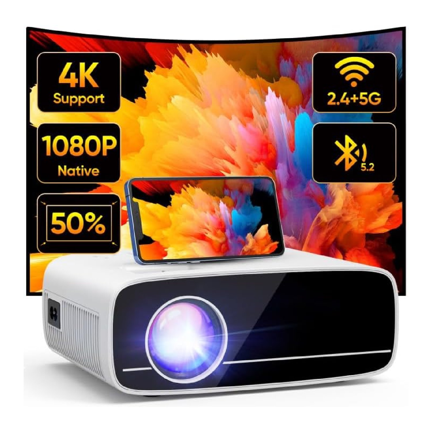 Vidéoprojecteur LCD Full HD 1080P Natif 15000 Lumens avec WiFi 5G et Bluetooth 5.2