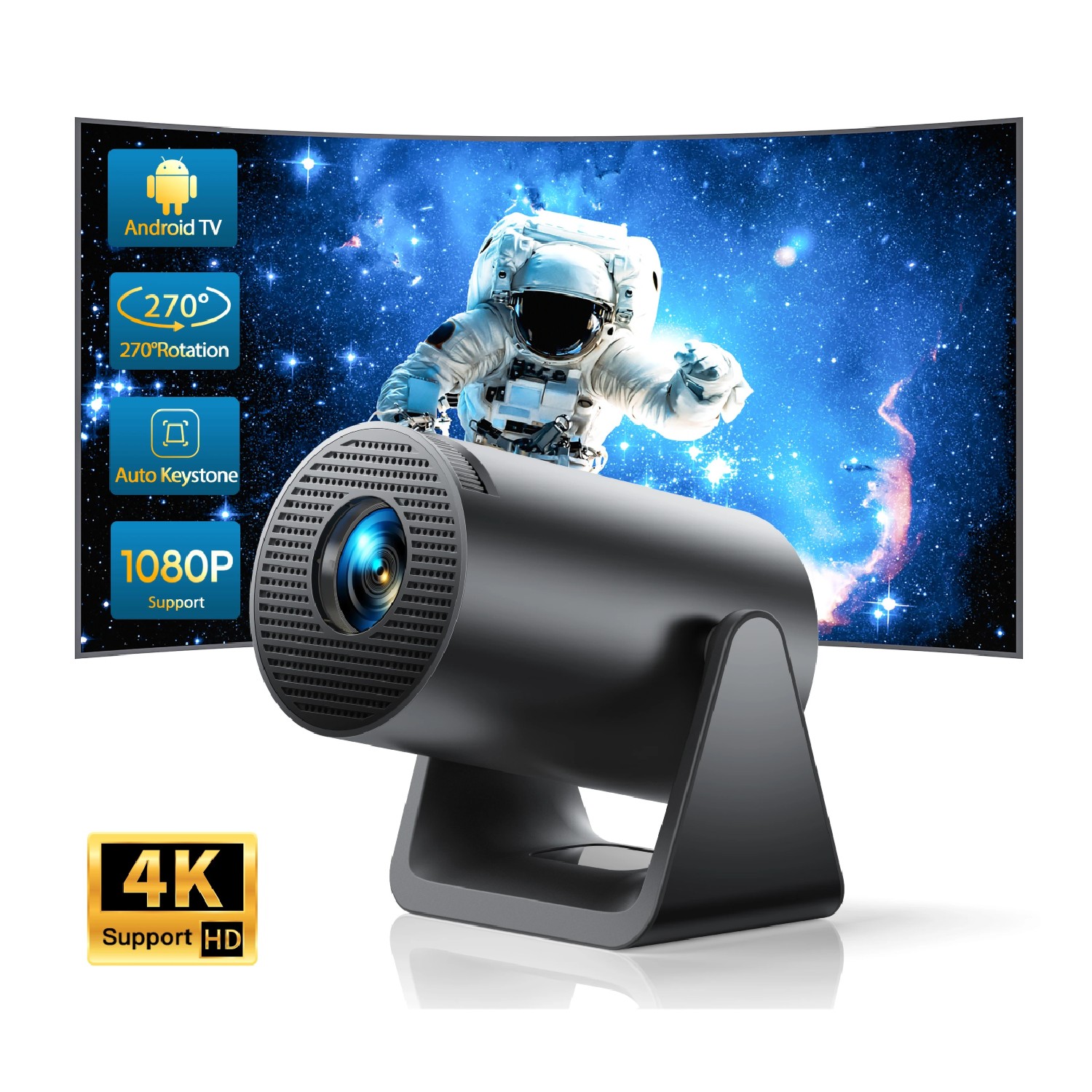 Vidéoprojecteur LCD 720p Support 1080P/4K – 300 ANSI Lumens – Android 11 et WiFi 6