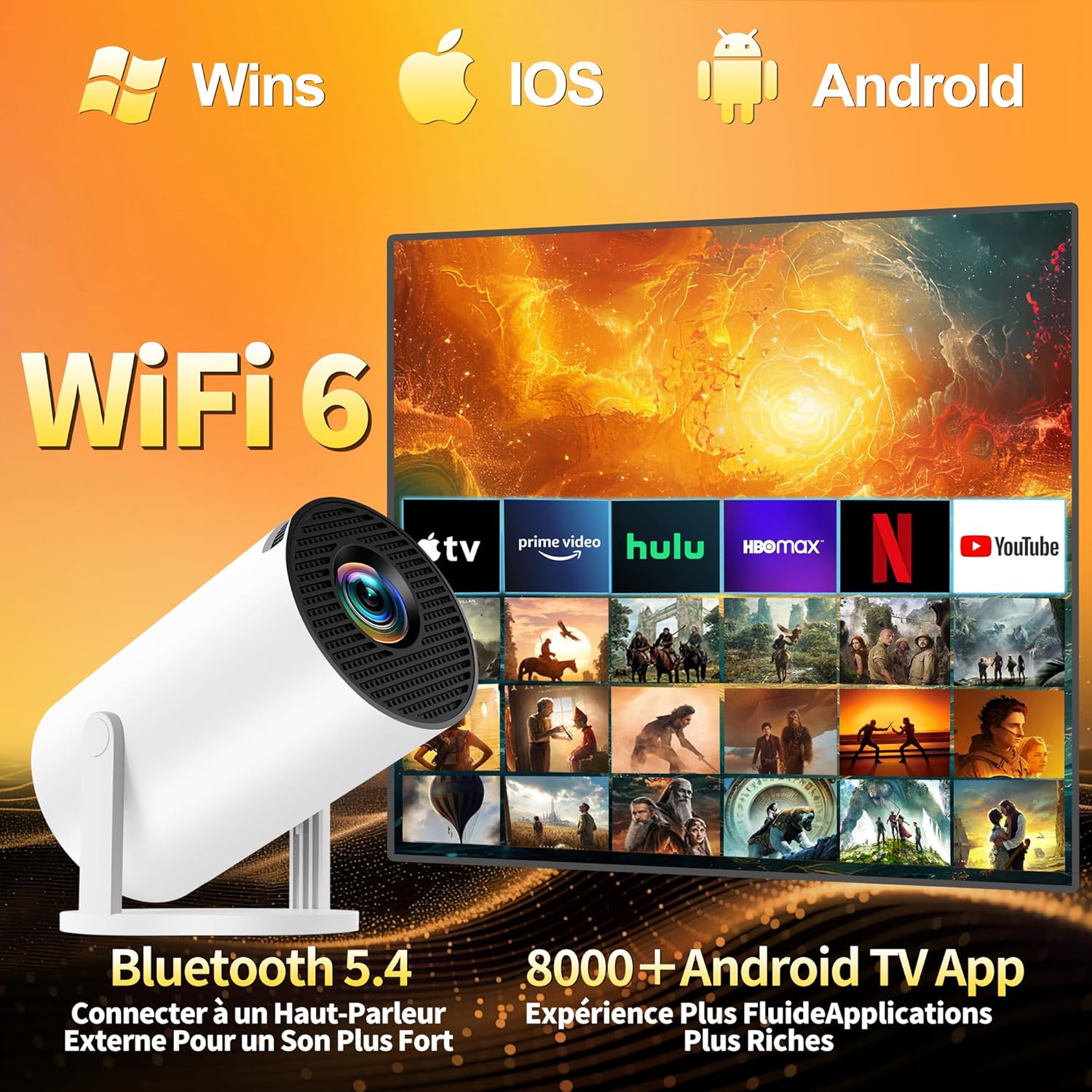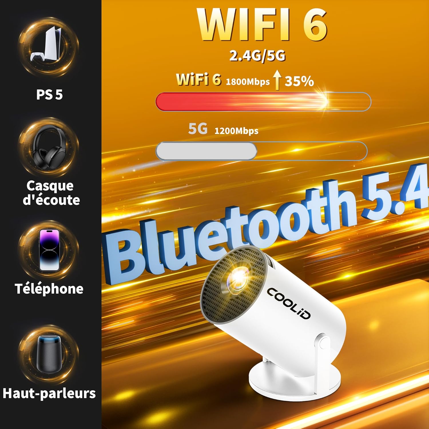 Vidéoprojecteur LED Full HD 1080P, WiFi 6 et Bluetooth 5.2 avec rotation à 180°