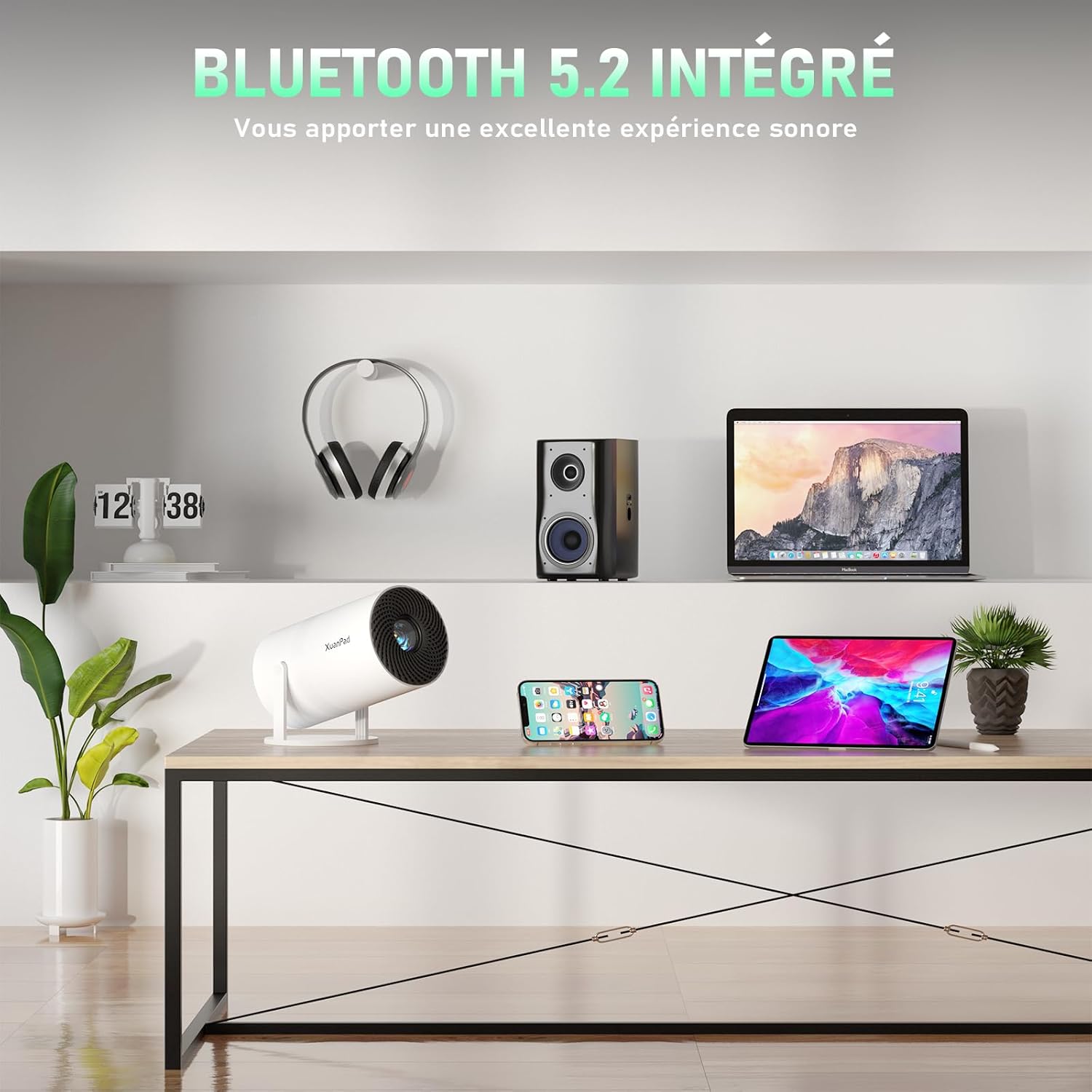 Projecteur LCD Full HD 1080P, WiFi 6, Bluetooth 5.2 avec support rotatif à 210 degrés