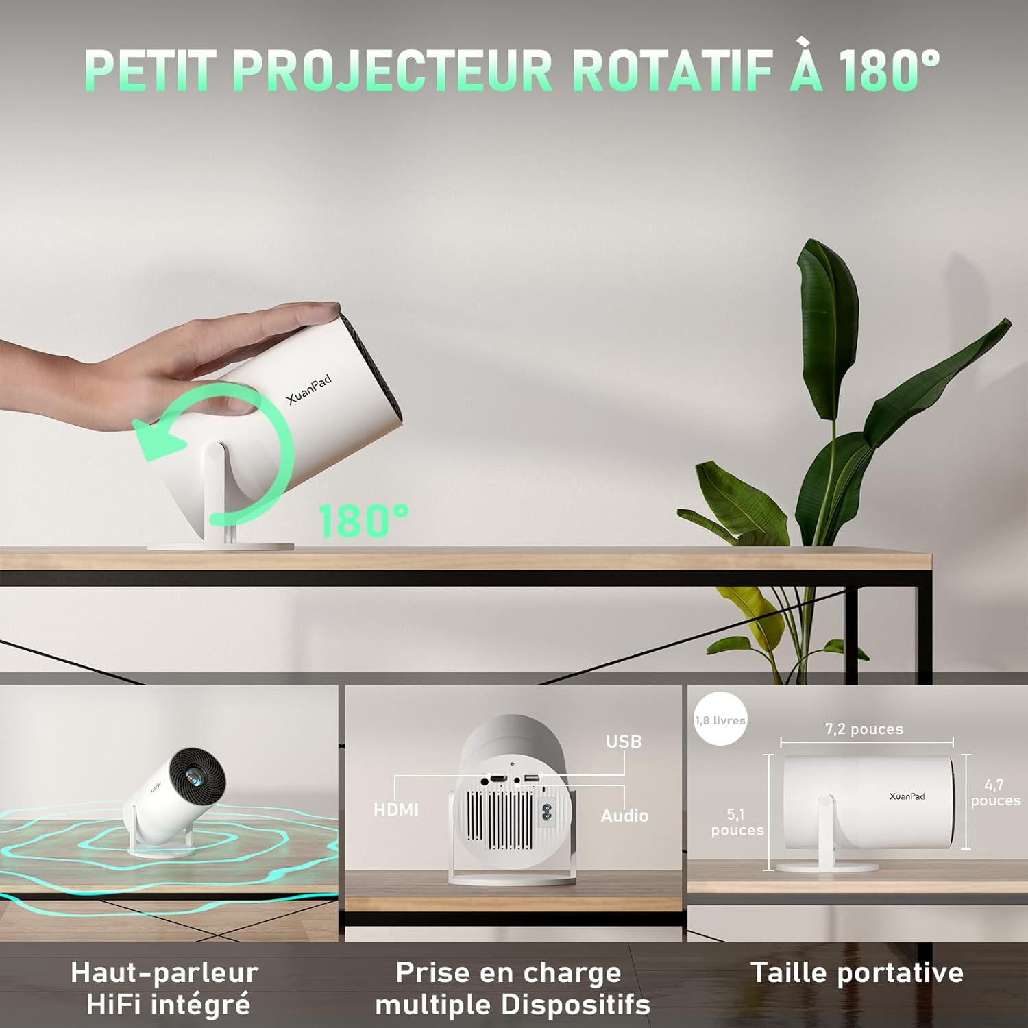 Ce matériel combine une résolution native 1080P, une connectivité WiFi 6 et un système de refroidissement silencieux en cuivre. Son socle rotatif à 210° et son focus électrique facilitent l’installation dans n’importe quel environnement. L’acquisition de ce Mini Projecteur Ultra HD assure une expérience visuelle fluide grâce à ses applications nativement certifiées.