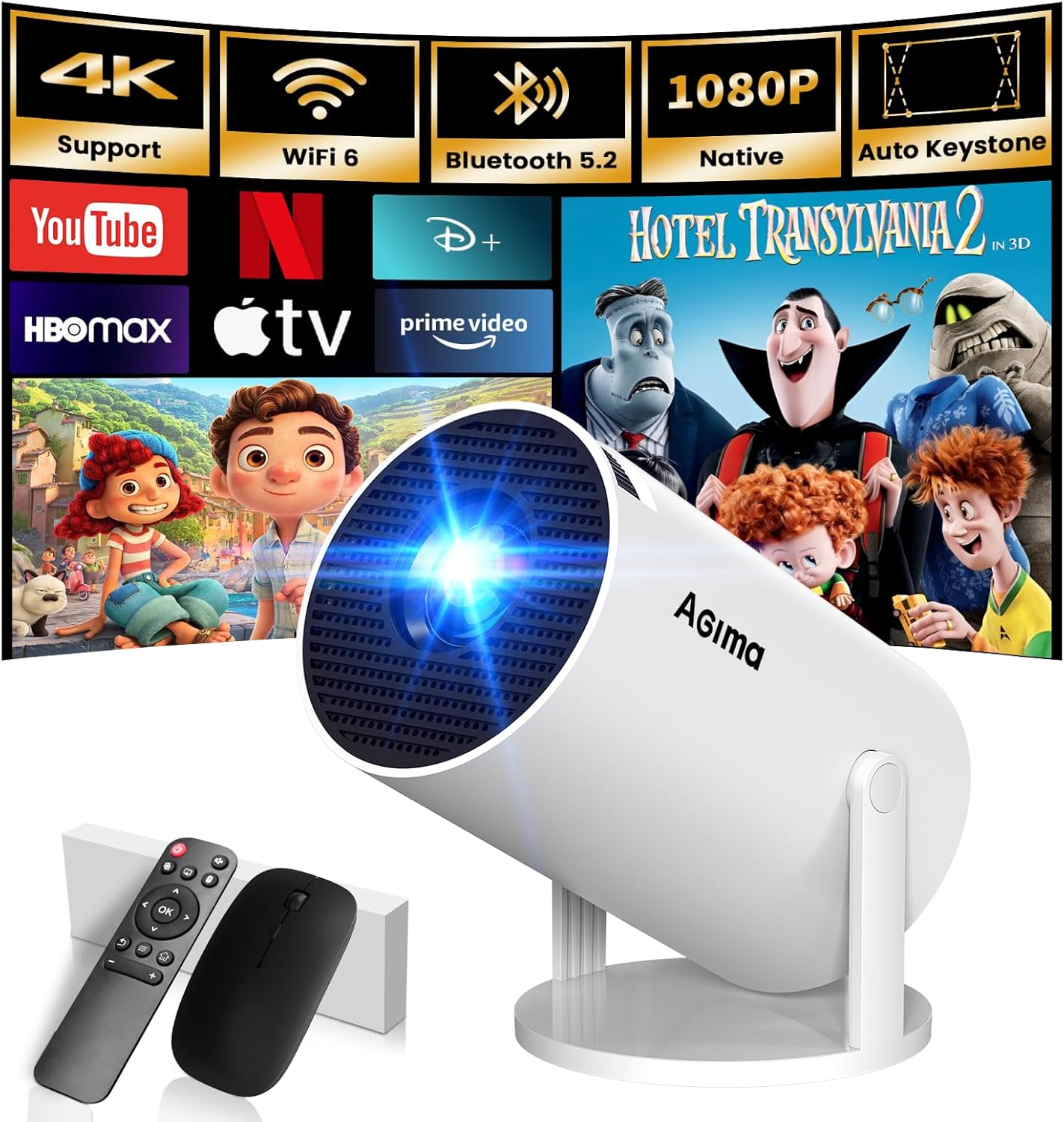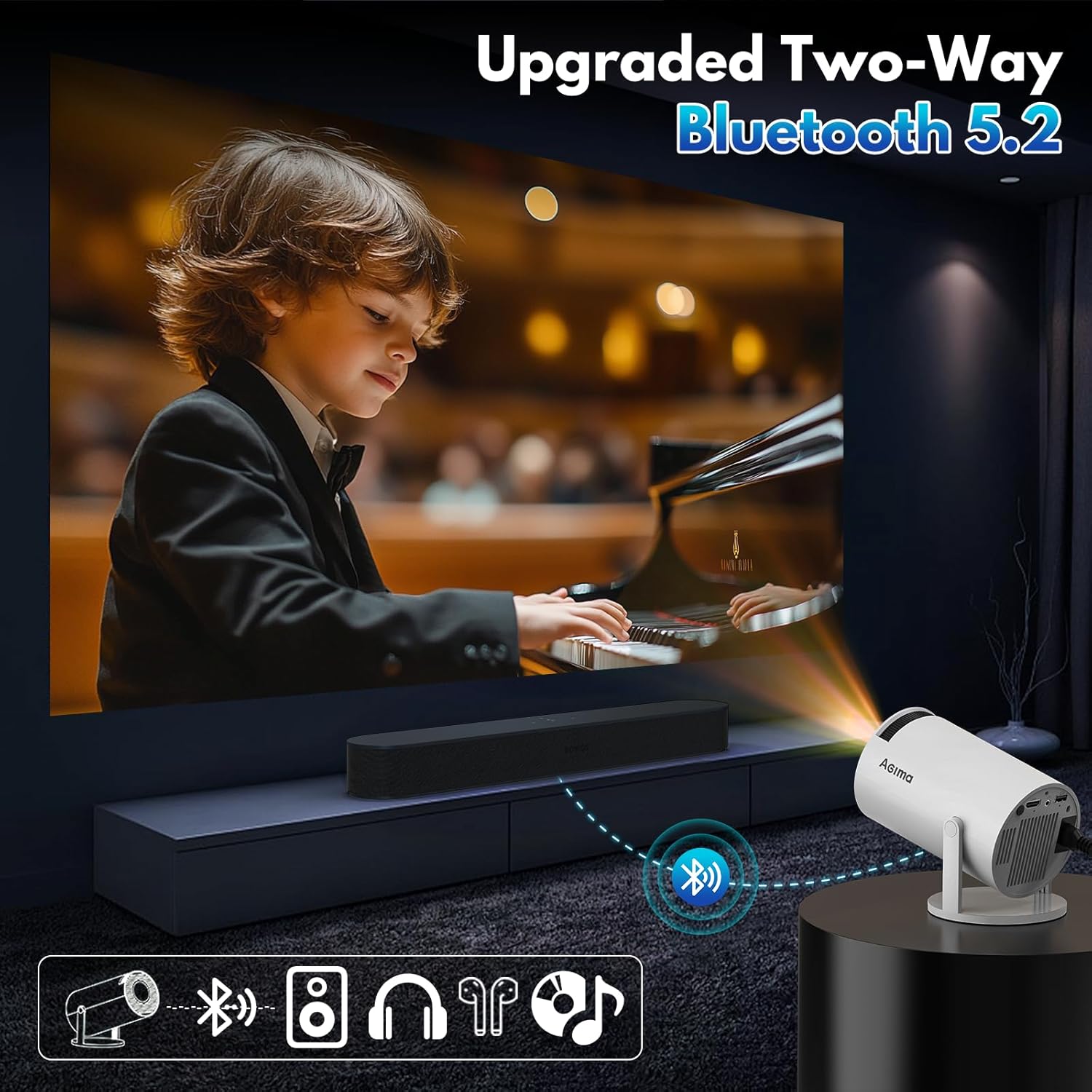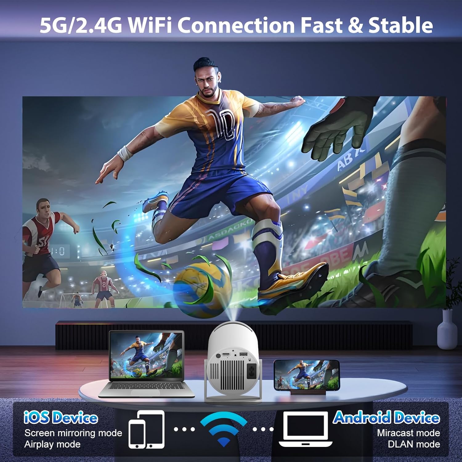 Mini Vidéoprojecteur LCD 1080P, Support 4K, WiFi 6 et Rotation 180° pour Home Cinéma