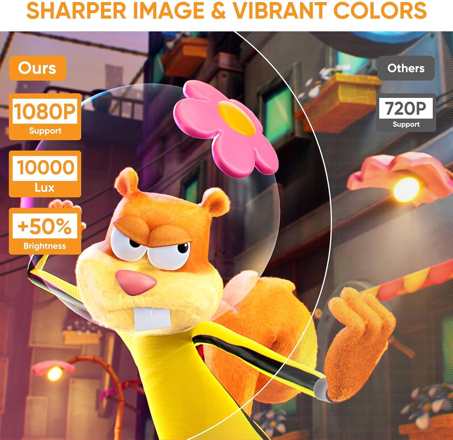 Ce Mini Vidéo Projecteur Portable FHD LCD dispose d’une résolution native de 1920 x 1080 pixels, assurant une précision technique rigoureuse pour chaque image affichée. Le système optique supporte les flux vidéo en entrée jusqu’à la résolution 3840 x 2160 pixels (4K supportée) grâce à une lentille en verre à 6 couches. Le taux de contraste de 10 000:1 renforce la profondeur des noirs et la saturation des couleurs lors des sessions de home cinéma.