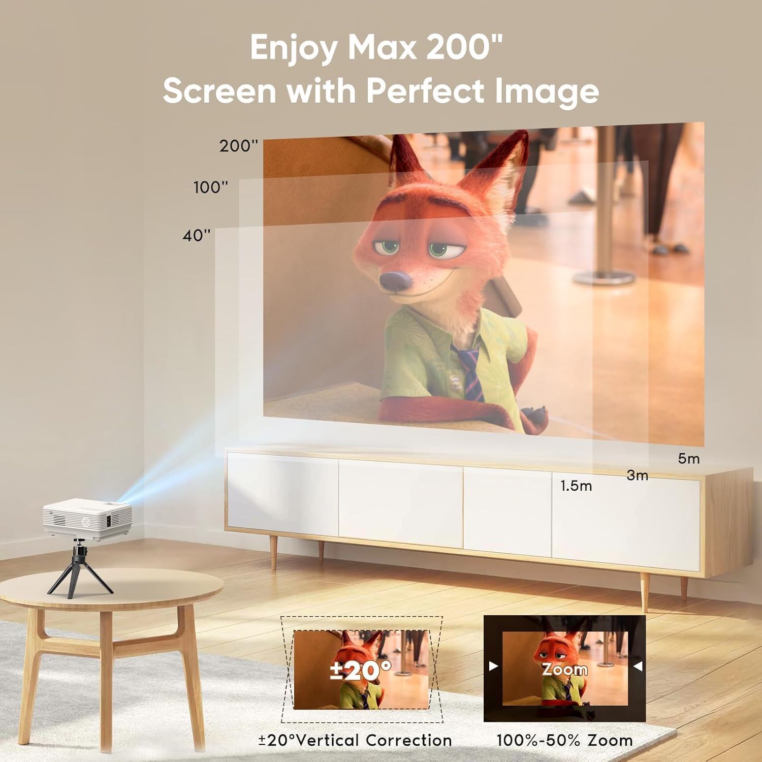 La fonction de zoom numérique réduit la taille de l’image de 100% à 50% sans nécessiter le déplacement physique de l’appareil. La correction trapézoïdale verticale de ±15° et la bague de mise au point manuelle permettent d’obtenir un rectangle parfait. Notre appareil projette une image allant de 40 à 200 pouces pour une distance de recul comprise entre 1,5 et 5 mètres.