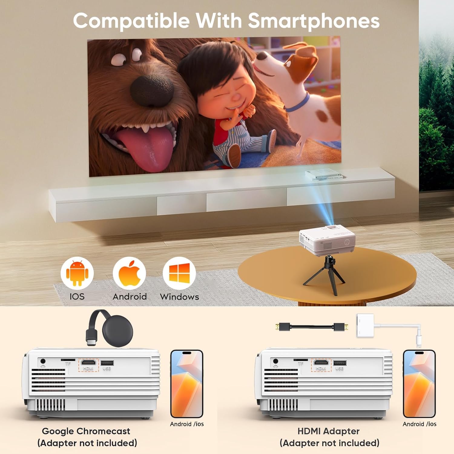 Vidéoprojecteur LCD Full HD 1080P Natif, Luminosité 15000L et Connectivité WiFi 5G/Bluetooth