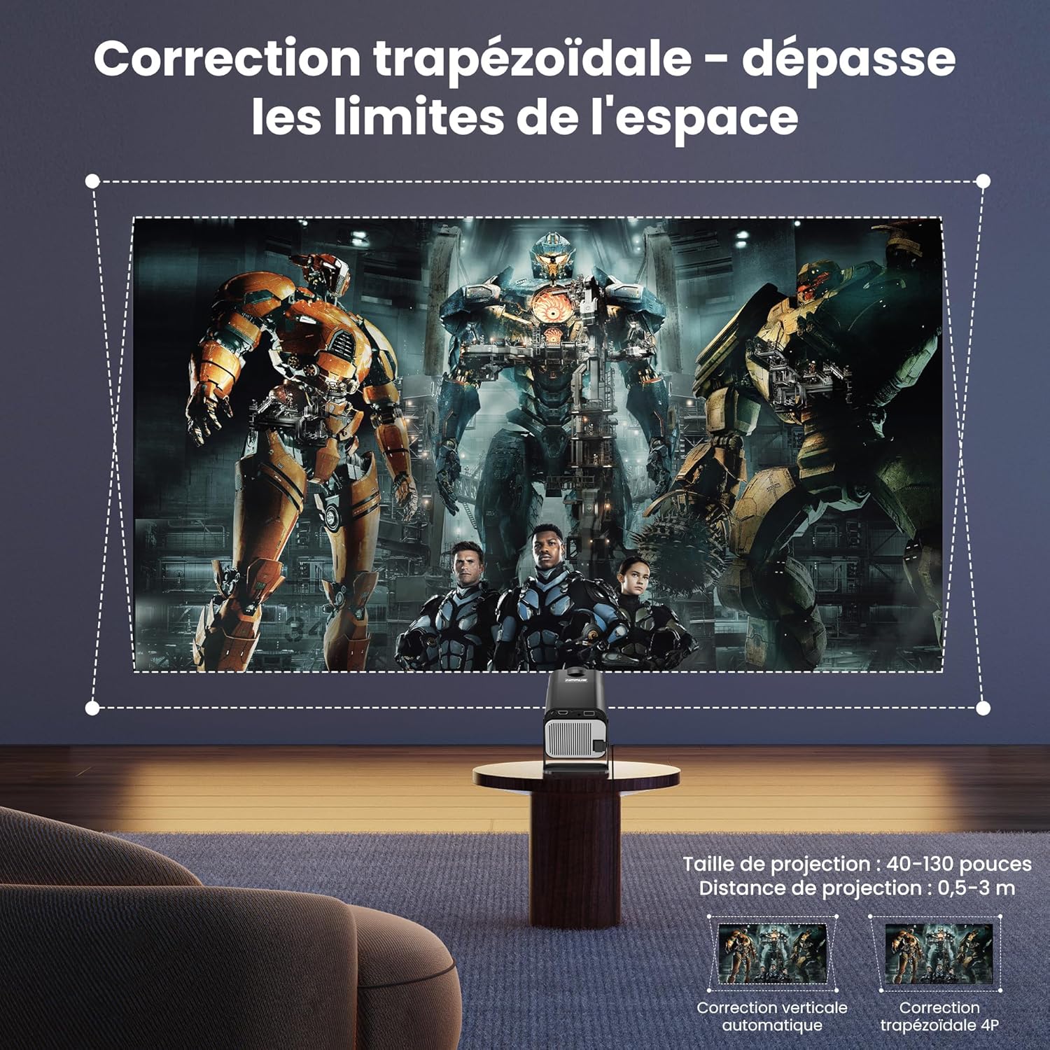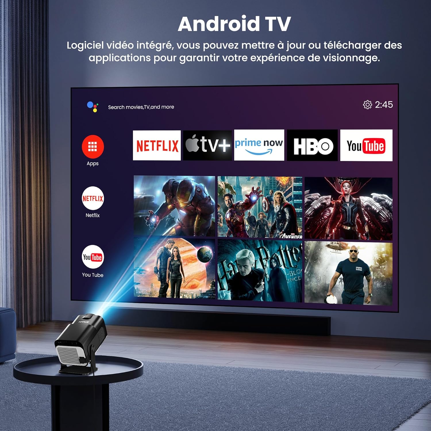 Cet appareil compact combine une résolution Full HD native, une luminosité de 15000 lumens et une rotation sur 270 degrés pour une flexibilité totale. Ce Mini Vidéoprojecteur Bluetooth représente une solution technique complète grâce à son système Android TV et sa connectivité WiFi 6 haute vitesse.