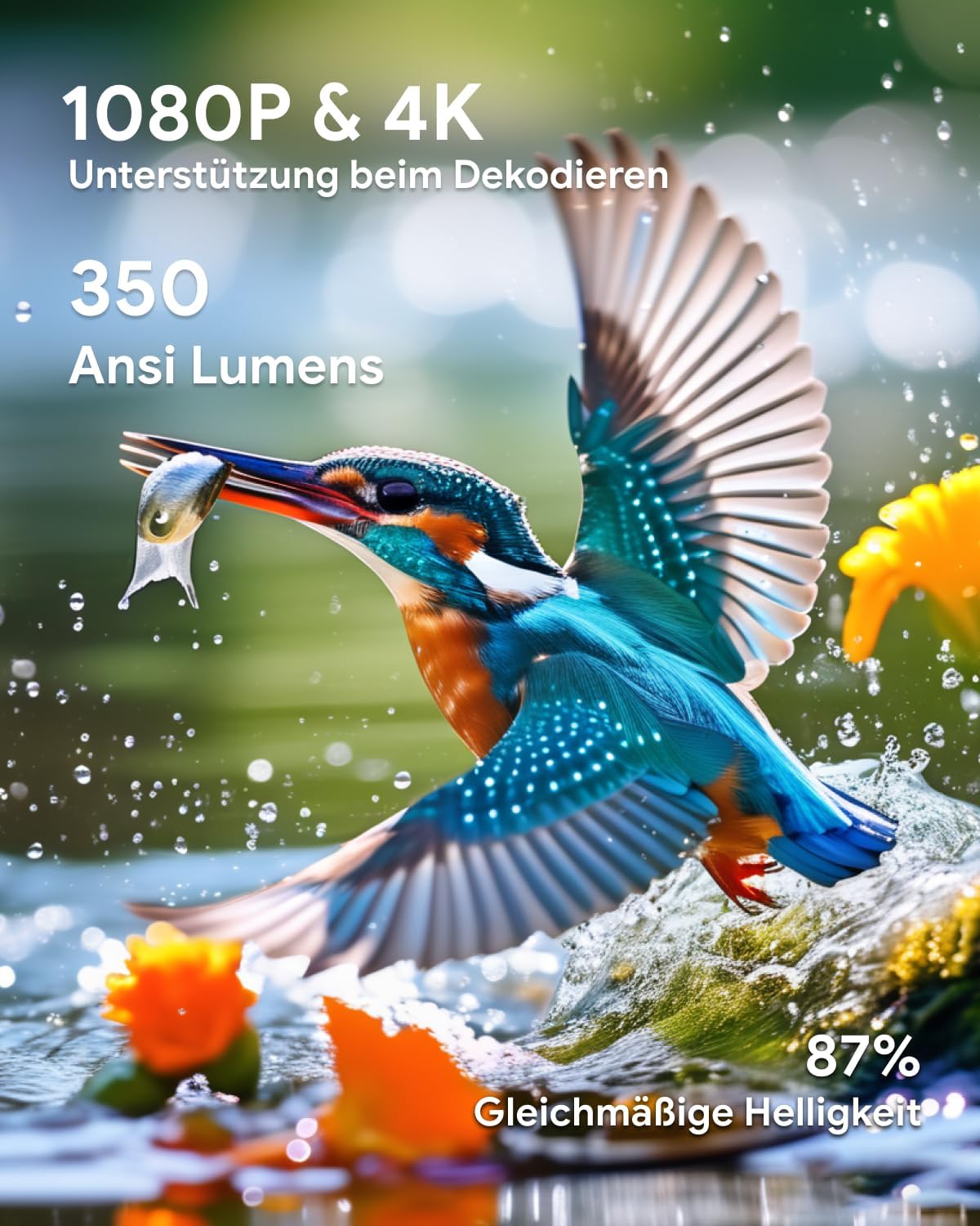 Le système repose sur une résolution native 720P optimisée pour une restitution nette des détails visuels. La prise en charge du décodage 1080P et 4K améliore la finesse des contenus affichés. Le traitement vidéo ajuste les contrastes et la netteté pour une projection équilibrée. Cette configuration permet une restitution détaillée des films, séries et présentations. L’optimisation interne favorise une expérience visuelle stable et cohérente.