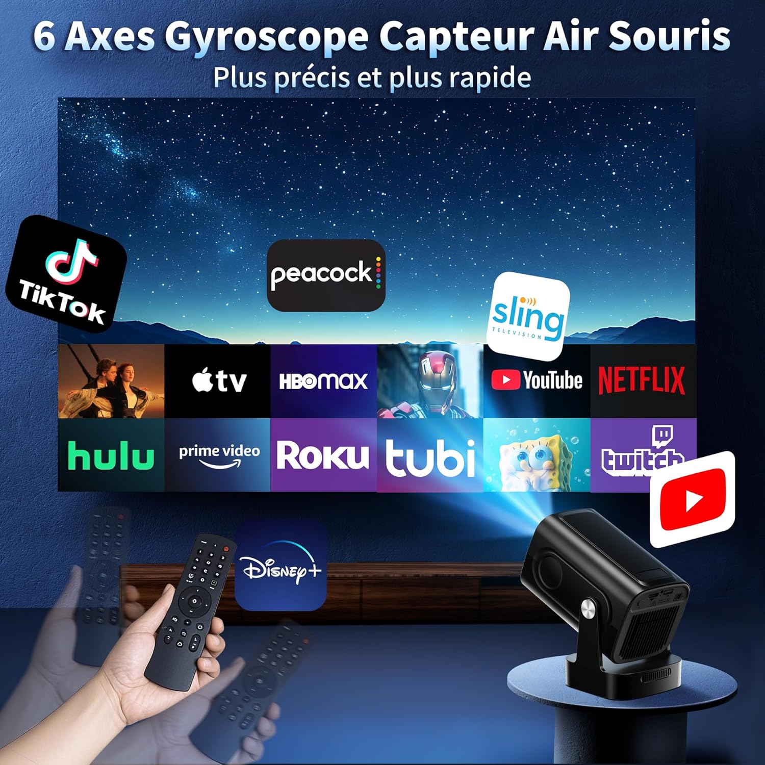 Ce modèle réunit une qualité d’image Full HD avec support 4K, une connectivité avancée et une grande flexibilité d’installation. Les fonctions WiFi 6, autofocus et projection 270° renforcent son usage polyvalent au quotidien. L’expérience multimédia reste fluide, immersive et adaptée aux besoins modernes de divertissement. Ce Mini Vidéoprojecteur Wi-Fi constitue une solution complète pour un usage home cinéma portable et connecté.