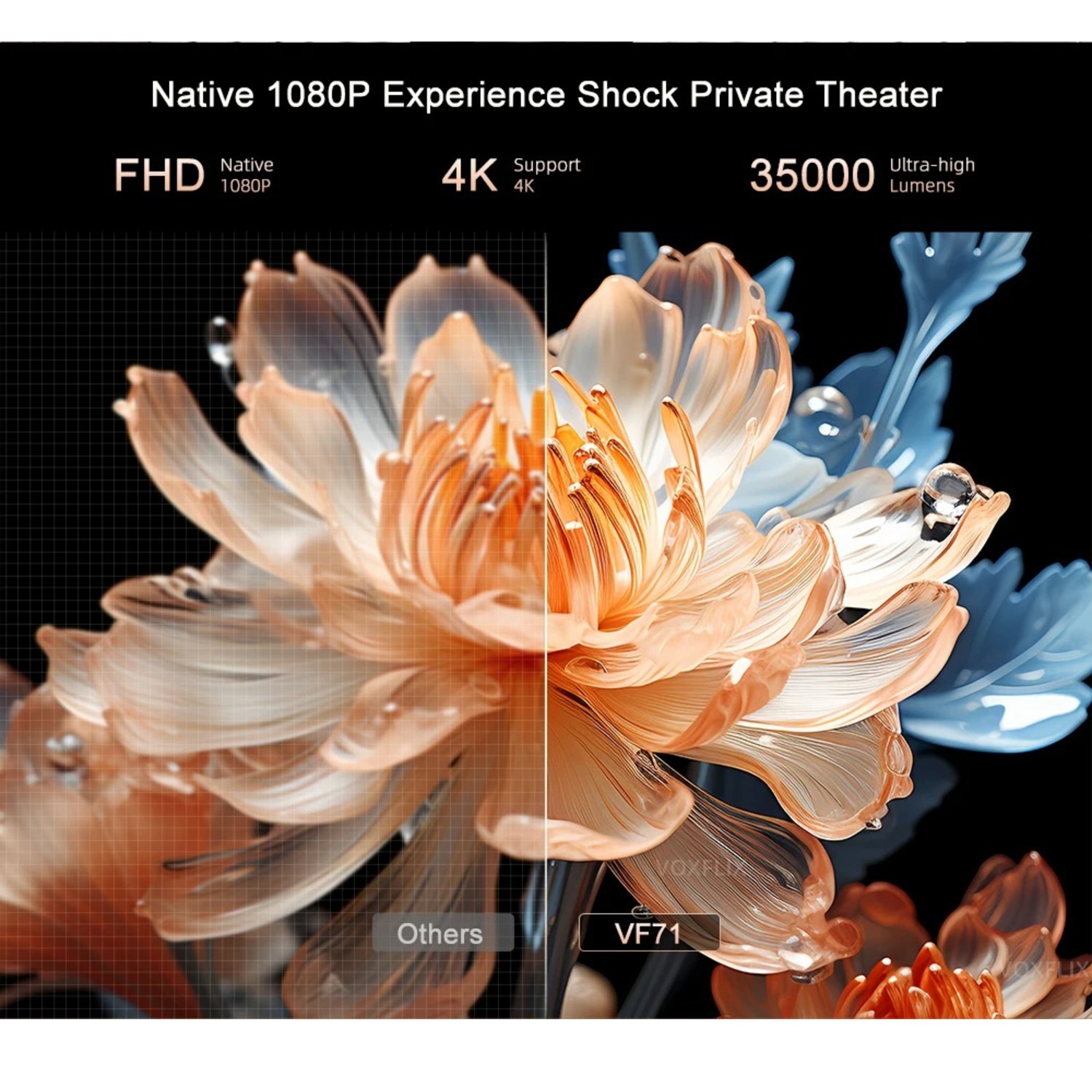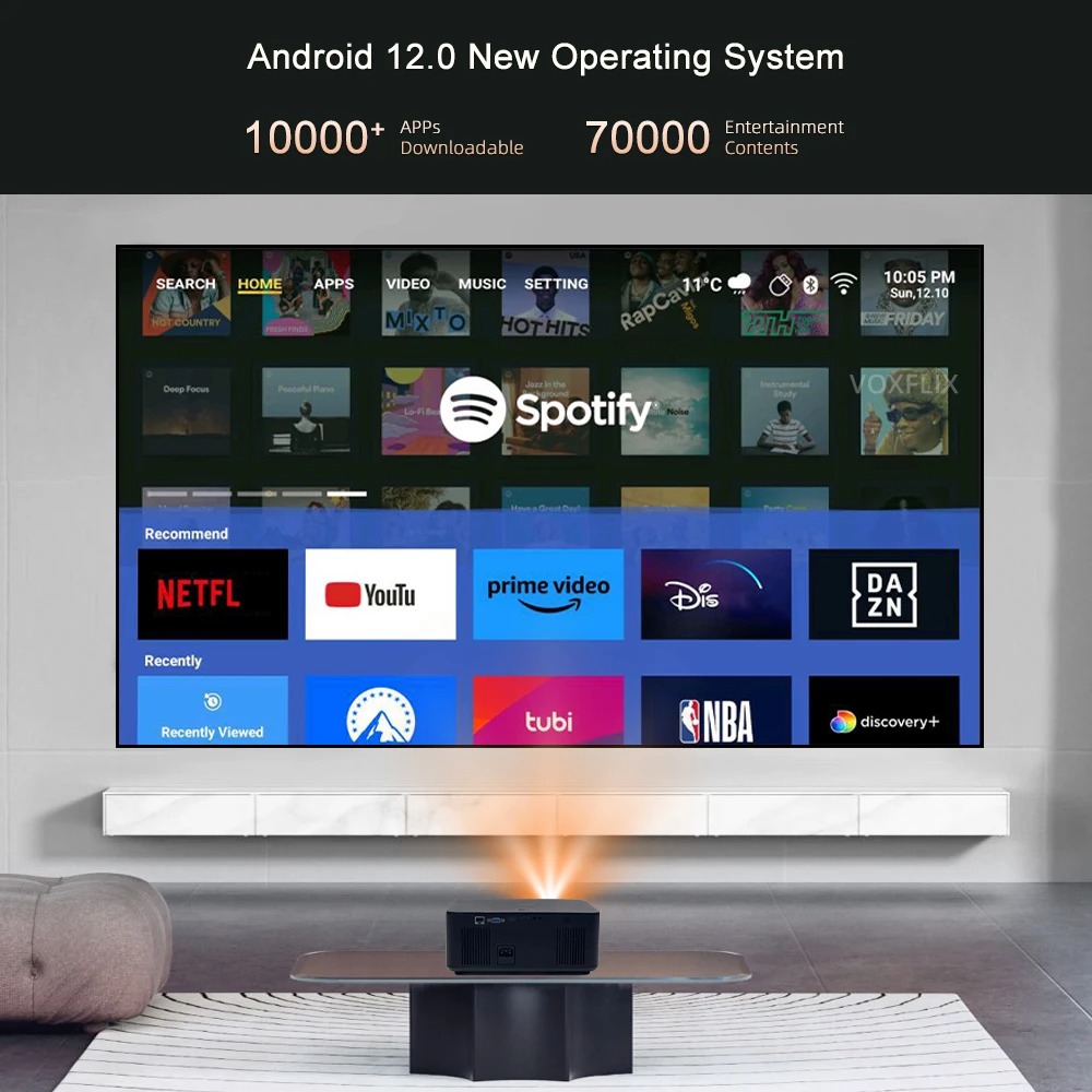 Projecteur LCD 1080p Full HD, 2500 ANSI Lumens, Android 12 et Auto-Focus pour Home Cinéma
