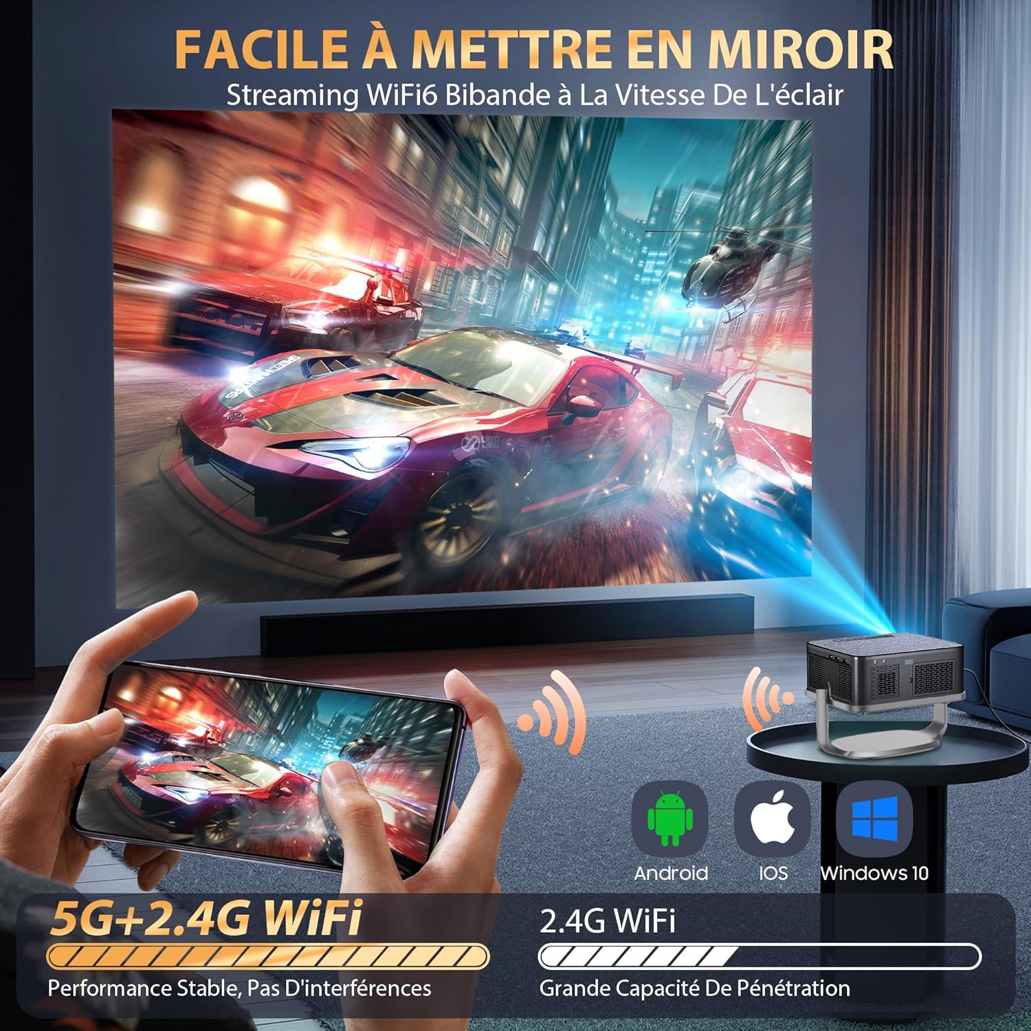 Notre dispositif combine une résolution Full HD native, une connectivité WiFi 6 avancée et une source lumineuse durable. Ce Projecteur Portable Pivotant s’adapte aux consoles de jeux, ordinateurs et smartphones pour un usage intensif. La compatibilité avec les flux 4K et le contraste élevé garantissent une expérience visuelle technique et précise.