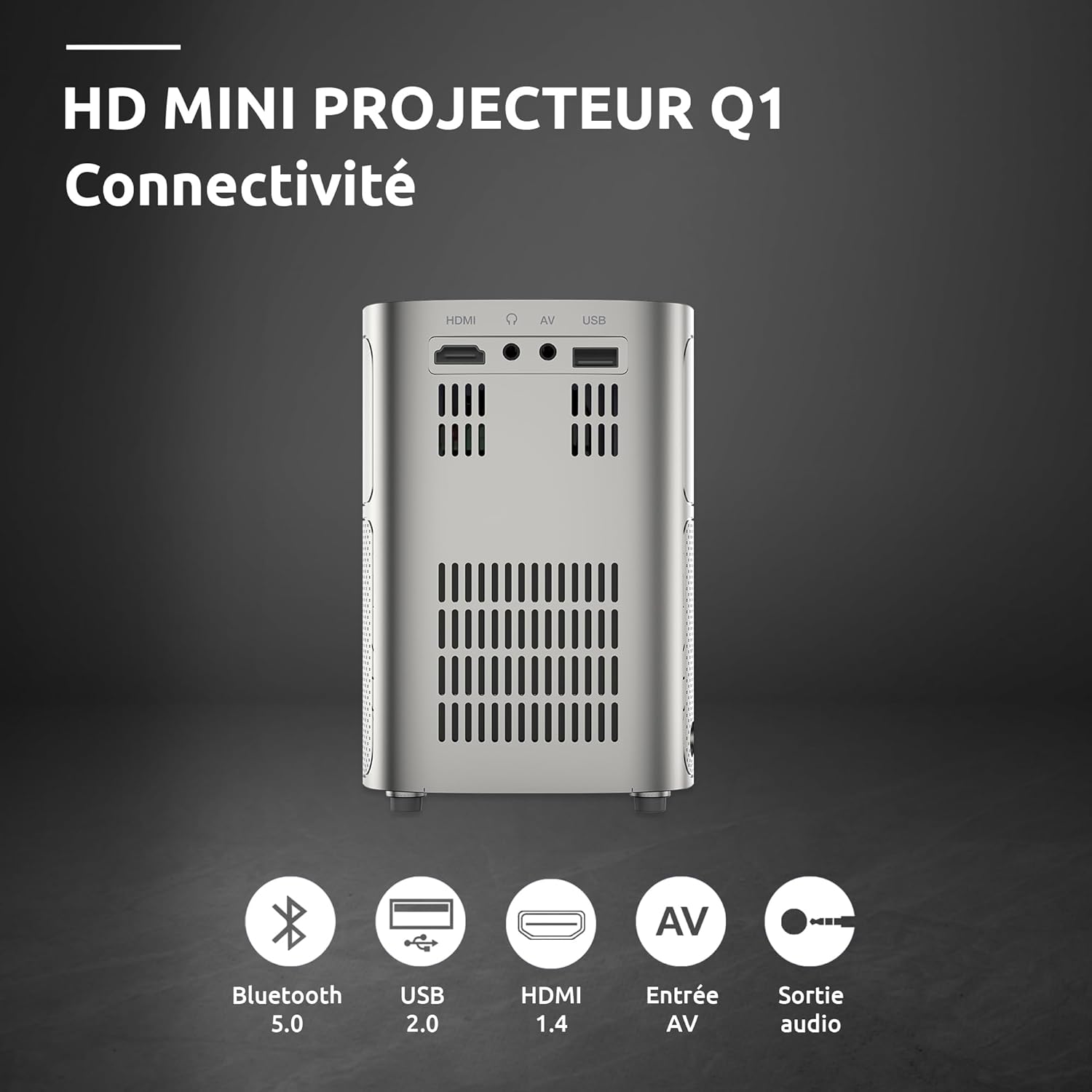 Notre vidéoprojecteur intègre des modules Wi-Fi et Bluetooth pour le partage de contenus et la diffusion audio sans câbles. La connectique physique comprend un port HDMI, une entrée AV, un port USB et une sortie audio jack. Ces interfaces assurent une liaison stable avec vos consoles de jeu, ordinateurs ou lecteurs multimédias.