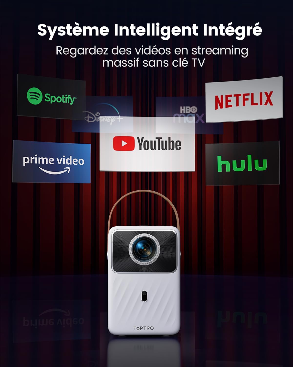 Ce Vidéo projecteur Portable Rechargeable combine une résolution Full HD 1080P avec une compatibilité jusqu’à 3840 x 2160 en entrée pour l’affichage de contenus multimédias. Il intègre une technologie d’affichage LCD associée à une luminosité de 380 ANSI lumens, adaptée à différents environnements de projection. Son système Android intégré permet un accès direct aux plateformes de streaming comme Netflix, Prime Video et YouTube. La batterie intégrée offre une autonomie pouvant atteindre 2,5 heures de lecture continue. Sa conception compacte et portable facilite son utilisation en intérieur comme en extérieur