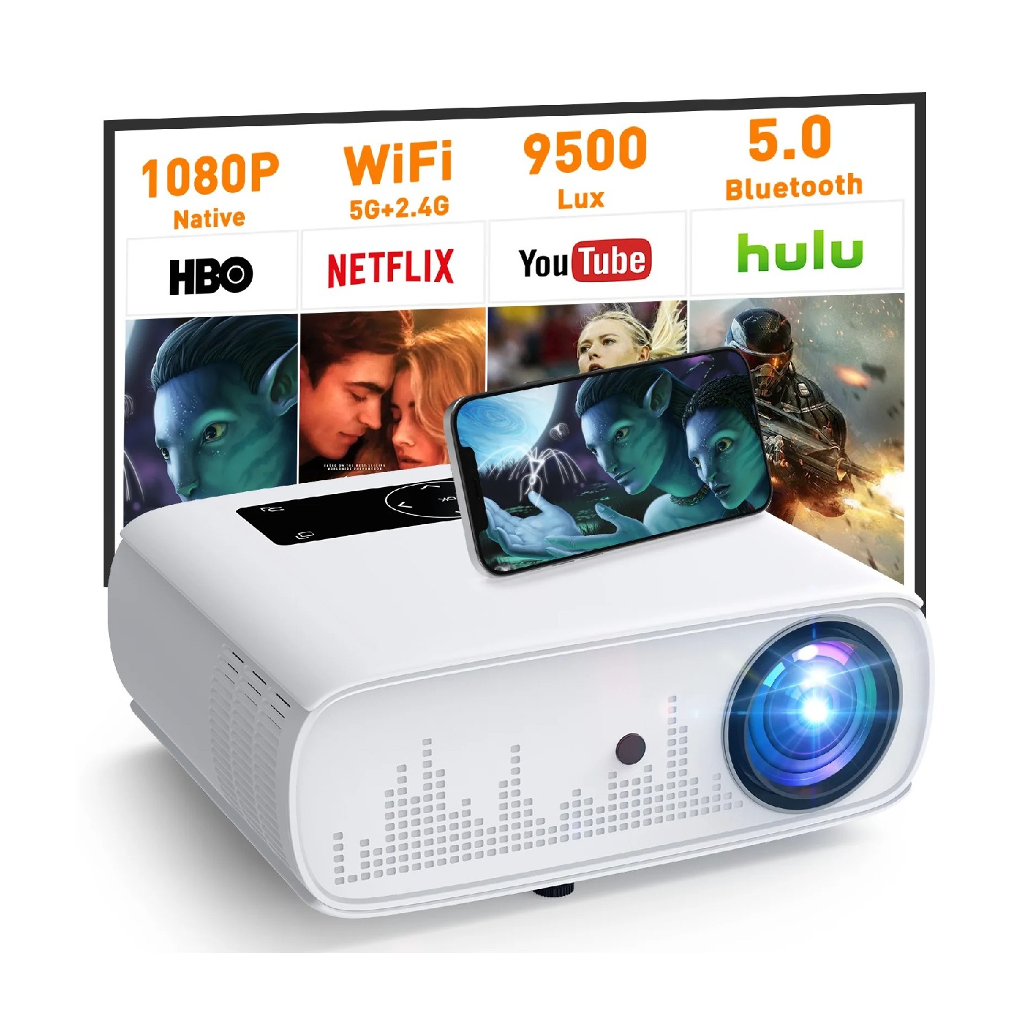 Vidéoprojecteur LCD LED Full HD 1080P Natif, 490 ANSI Lumens avec Wi-Fi 5G et Bluetooth