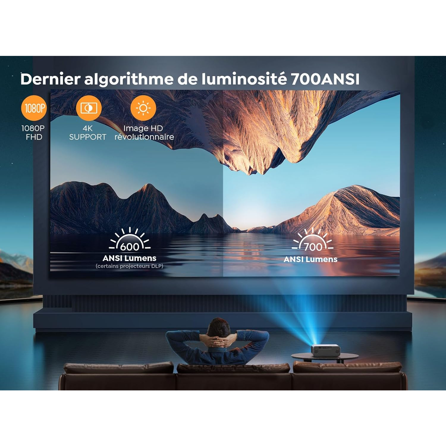 Ce projecteur combine Full HD natif, compatibilité 4K et connectivité avancée pour une utilisation multimédia complète. Les fonctions d’autofocus et de correction automatique simplifient l’installation et améliorent le confort d’usage. Sa connectivité WiFi 6 et Bluetooth renforce son intégration dans un écosystème moderne. Vidéo Projecteur Compatible iPhone offre une solution polyvalente pour cinéma maison et usage mobile.