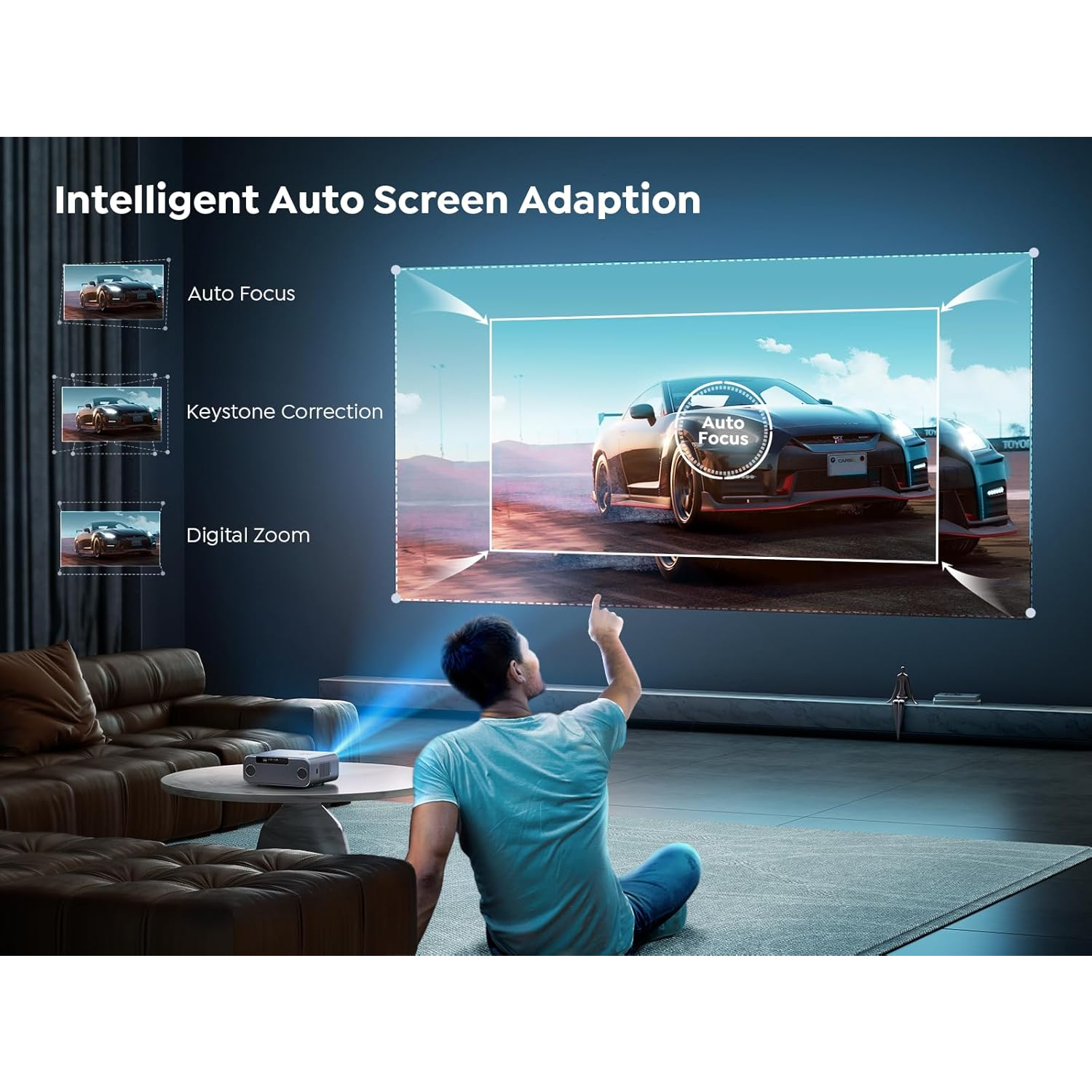 Projecteur LED Full HD 1080P avec support 4K, autofocus IA et connectivité WiFi 6 Bluetooth