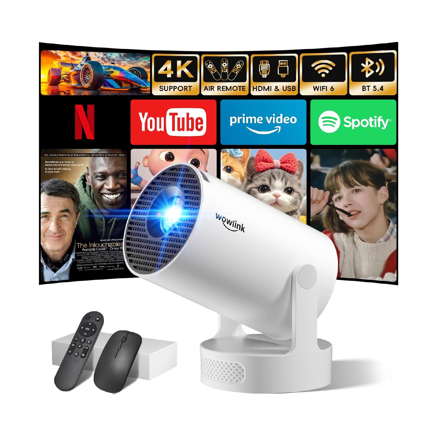 Grâce à sa résolution native 720P supportant la 4K et sa rotation flexible, notre modèle offre une polyvalence technique totale. L’intégration du WiFi 6 et du Bluetooth 5.4 transforme ce Vidéoprojecteur Domestique en un centre multimédia complet et mobile.