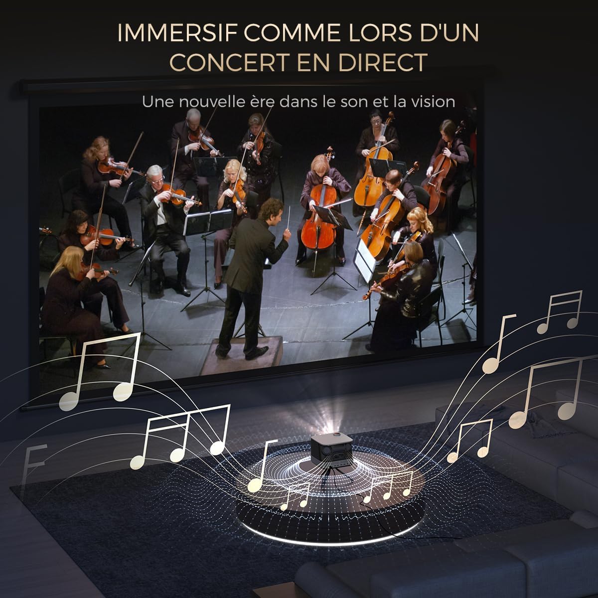 Vidéoprojecteur LED 1080P Natif, 500 ANSI Lumens, Smart TV et Audio 36W pour Usage Extérieur