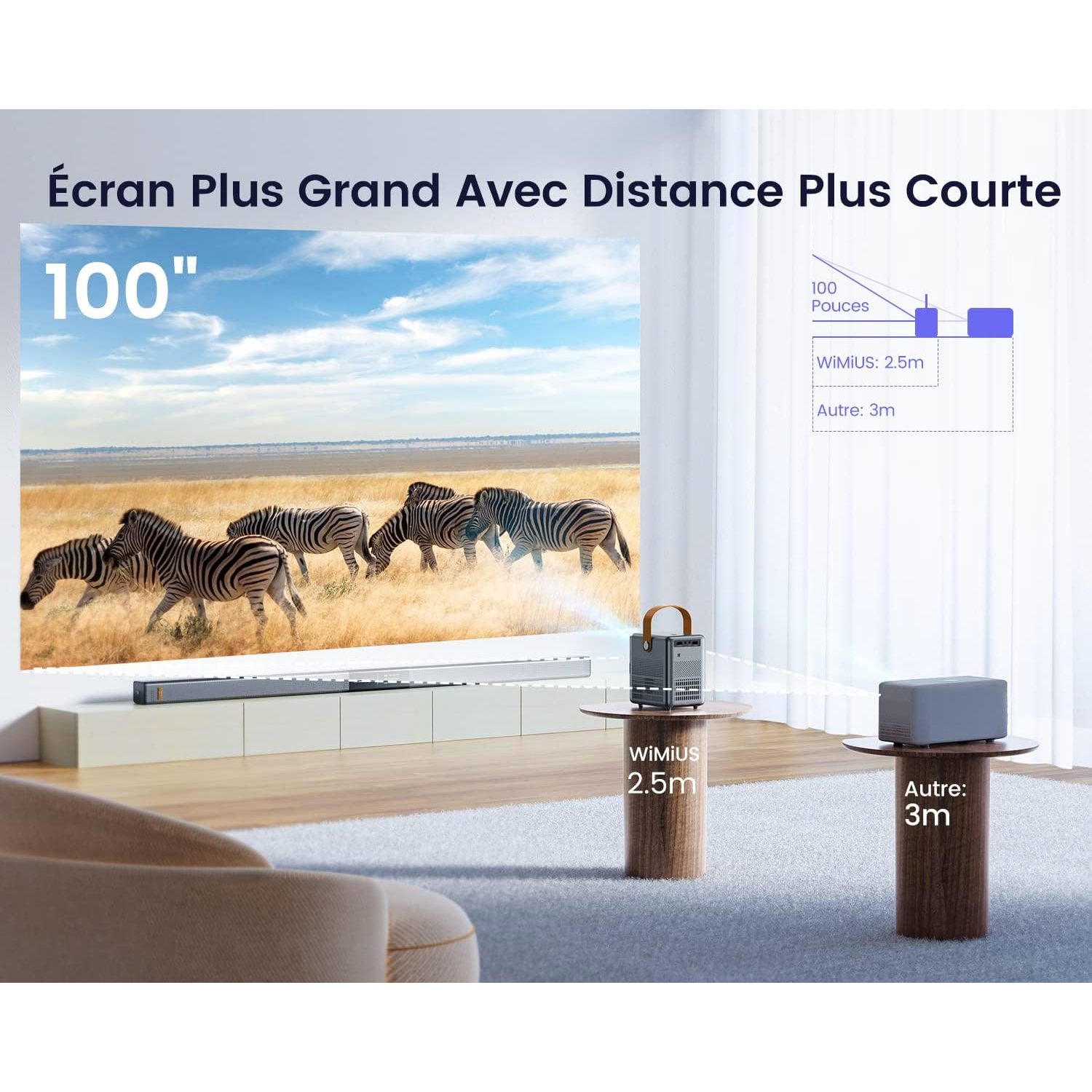 Notre Vidéo Projecteur Nomade intègre une mise au point électrique en 1 seconde, offrant une image immédiatement optimisée pour un confort visuel constant. Le rapport de projection 1,1:1 permet une utilisation en courte distance avec une image large et immersive. La plage de projection s’étend de 40 à 300 pouces, adaptée aux petits comme aux grands espaces. La technologie de calibration rapide améliore la stabilité de l’image dès l’allumage. L’ensemble garantit une expérience fluide pour le cinéma, le gaming et les présentations.