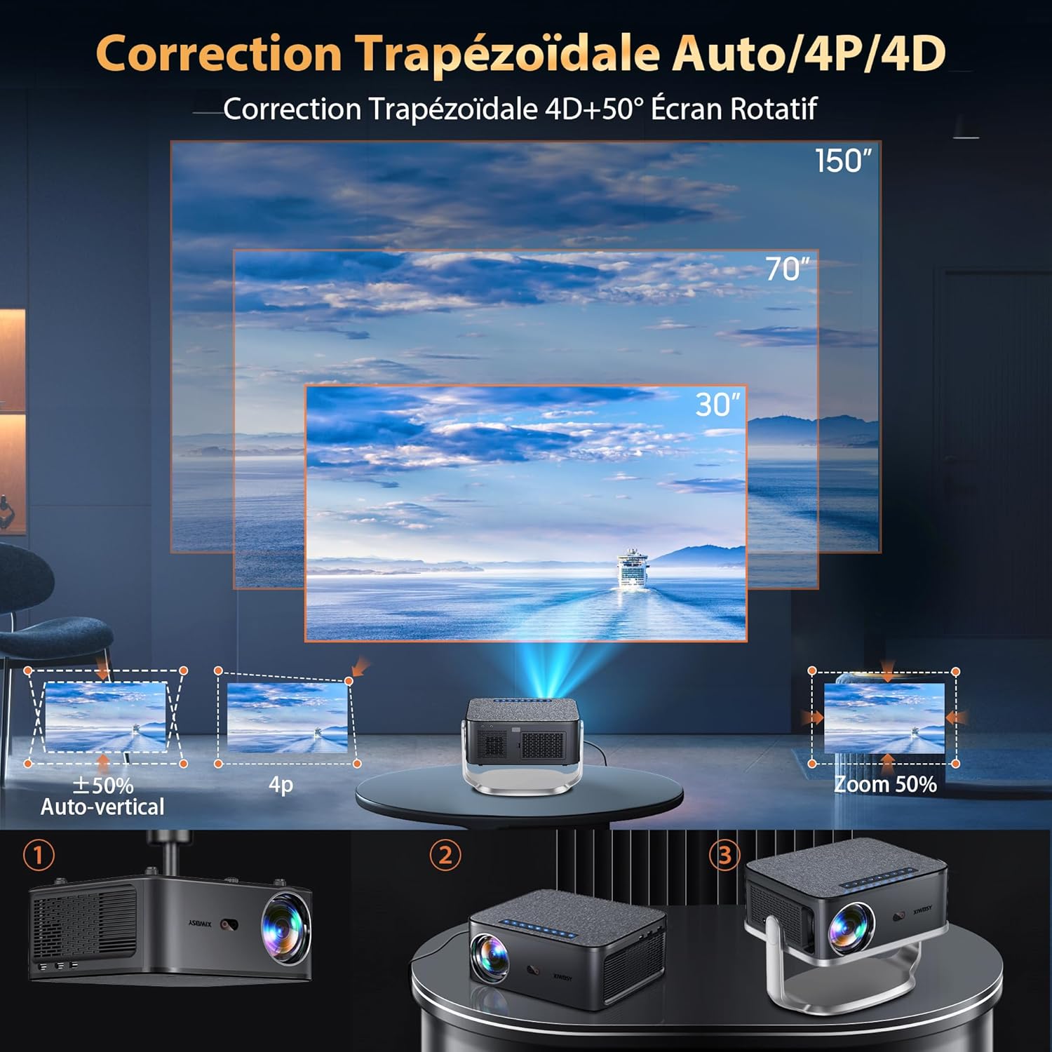 Notre dispositif utilise une source lumineuse d’une puissance de 105 Watts délivrant une intensité de 30000 lumens. Le panneau LCD affiche un ratio de contraste de 20000:1, assurant une séparation claire entre les différents niveaux de gris. La durabilité de la source de lumière atteint 60000 heures, ce qui garantit une exploitation prolongée en mode Home cinéma ou pour des sessions de jeu.