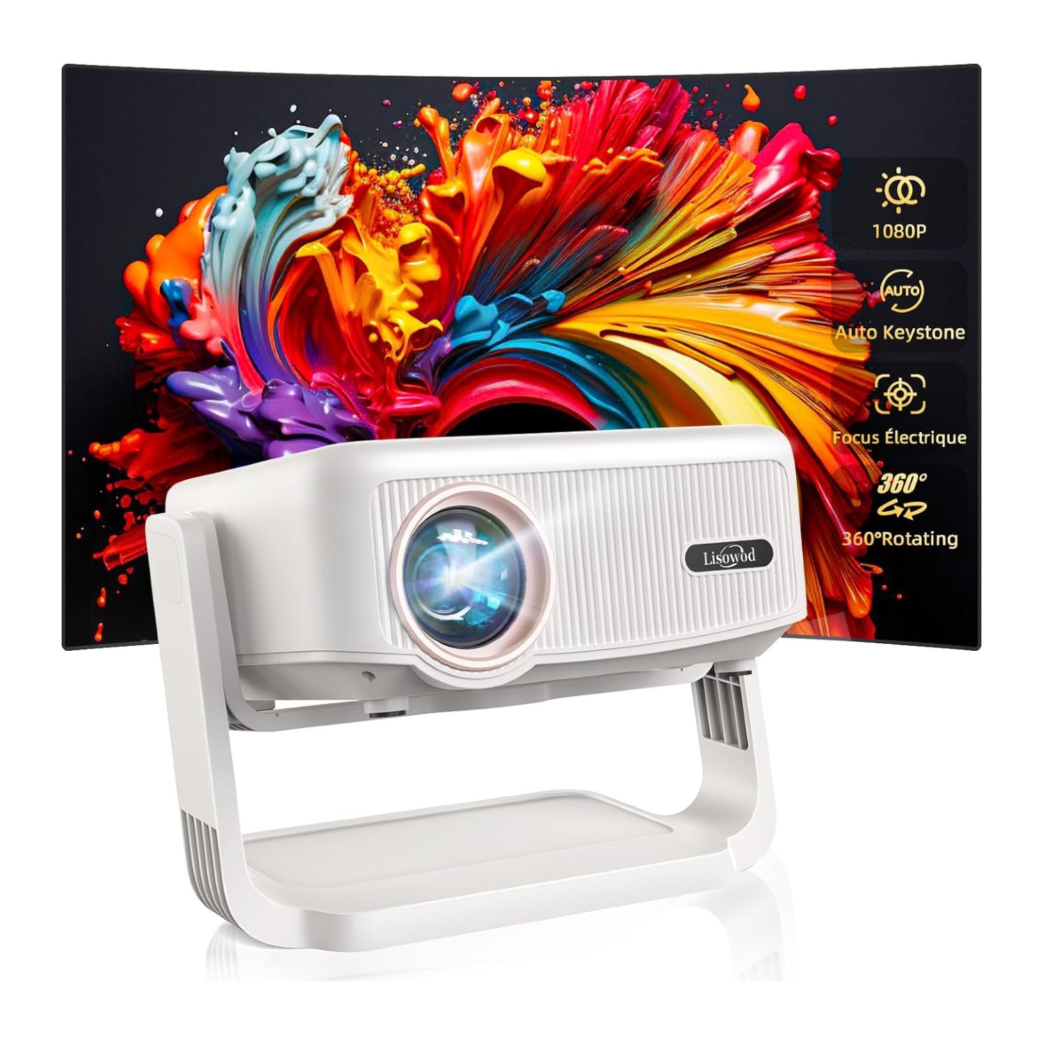 Vidéoprojecteur LCD Full HD 1080p avec 19000 Lumens, WiFi 6 et Rotation 360°