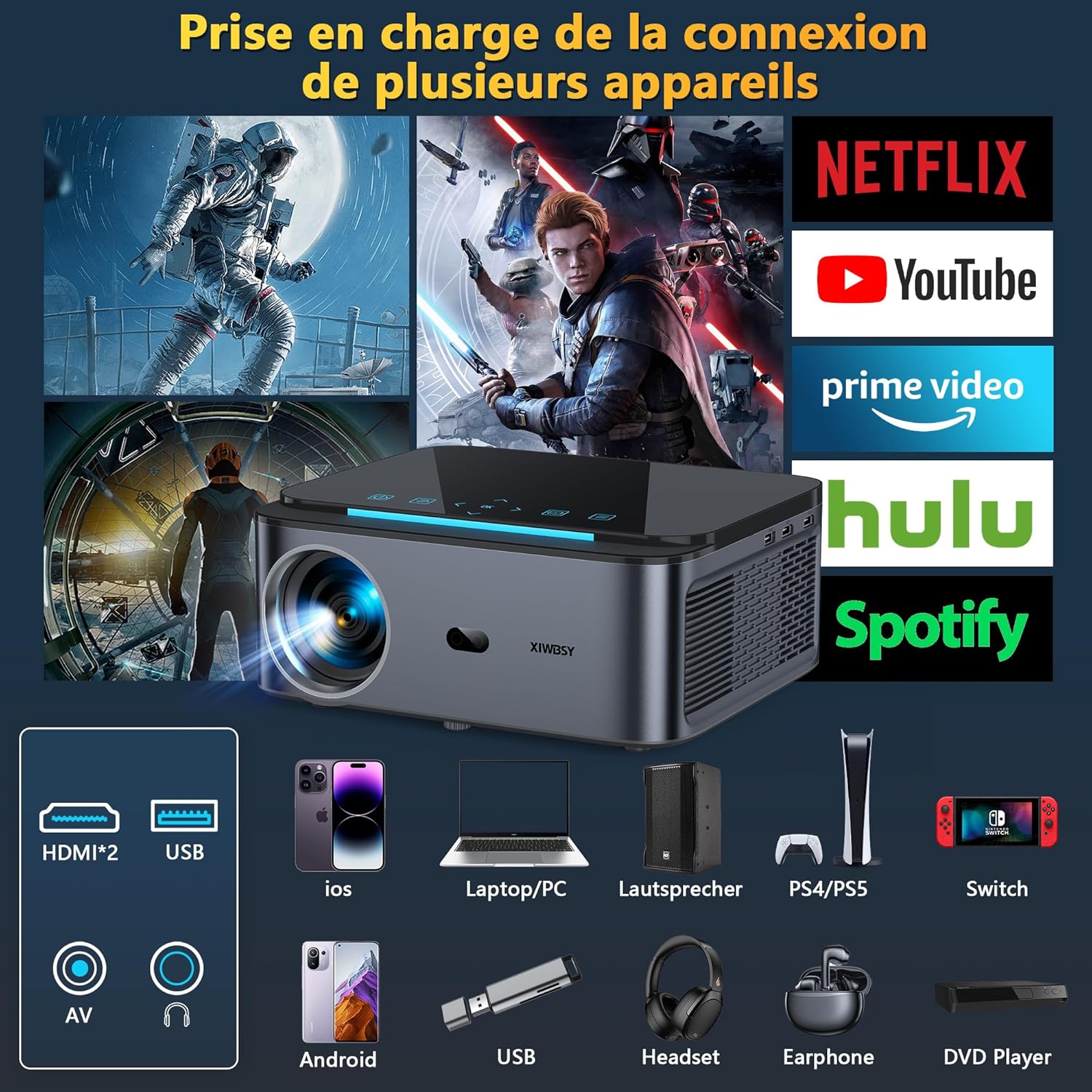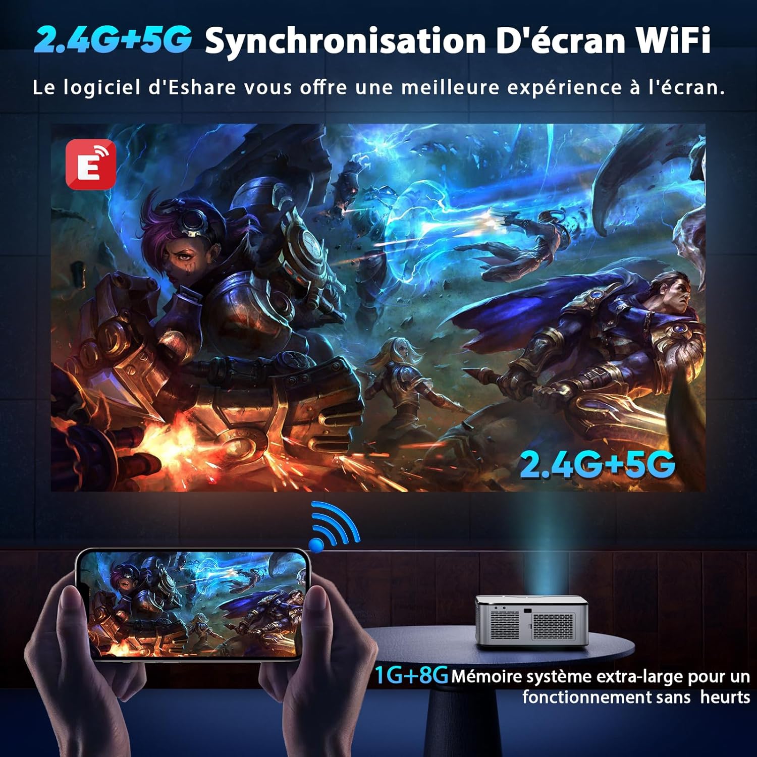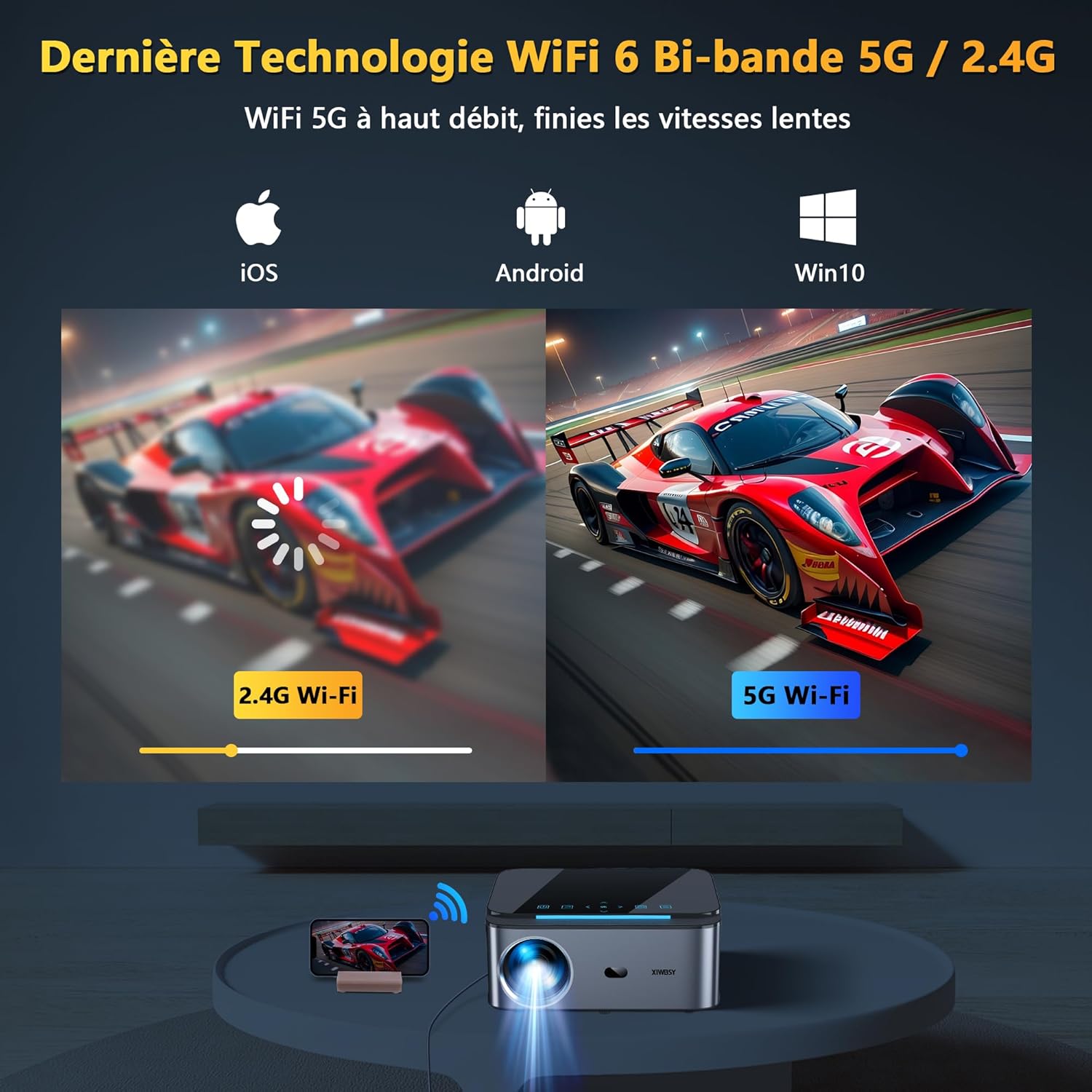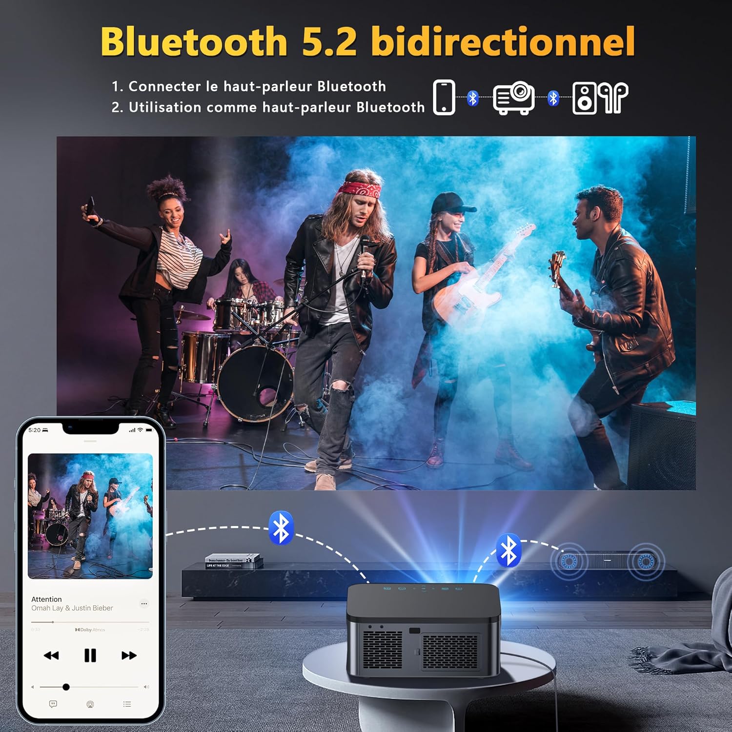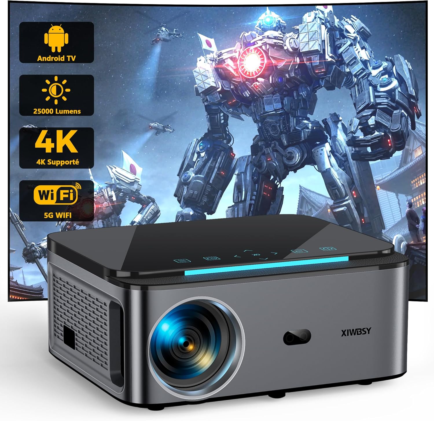 Vidéoprojecteur LED 4K Natif 20000 Lumens WiFi 5G et Bluetooth pour Home Cinéma