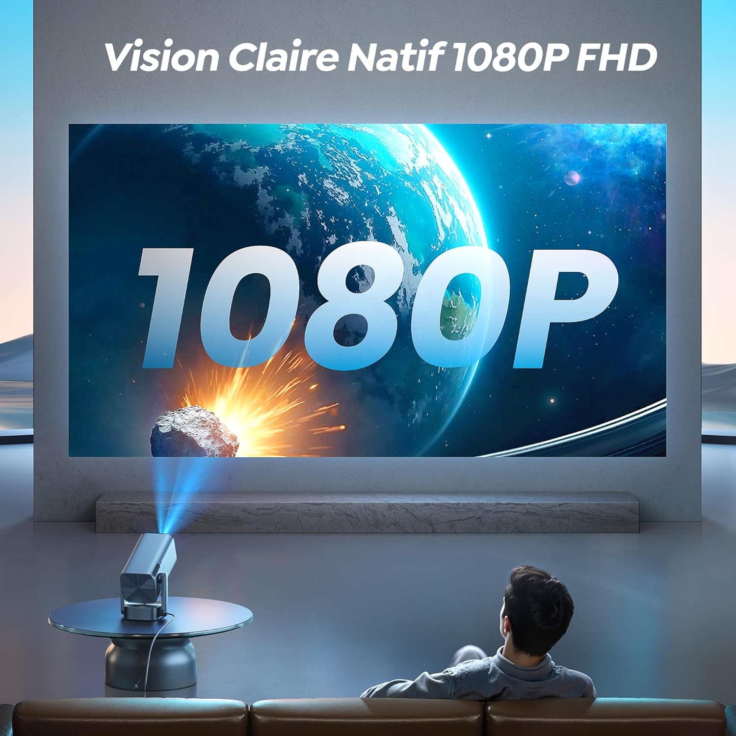 Notre équipement dispose d’une résolution Native Full HD de 1920 x 1080 pixels garantissant une netteté précise sur chaque zone de l’image. Bien que la sortie soit en 1080P, le processeur accepte et traite les signaux 4K UHD (3840 x 2160 pixels) en entrée sans perte de signal. Cette capacité permet de diffuser des contenus de haute définition issus de plateformes de streaming ou de consoles de jeux récentes. Ce Vidéo Projecteur Portable TV couvre 98% de l’espace colorimétrique NTSC pour une restitution fidèle des teintes.