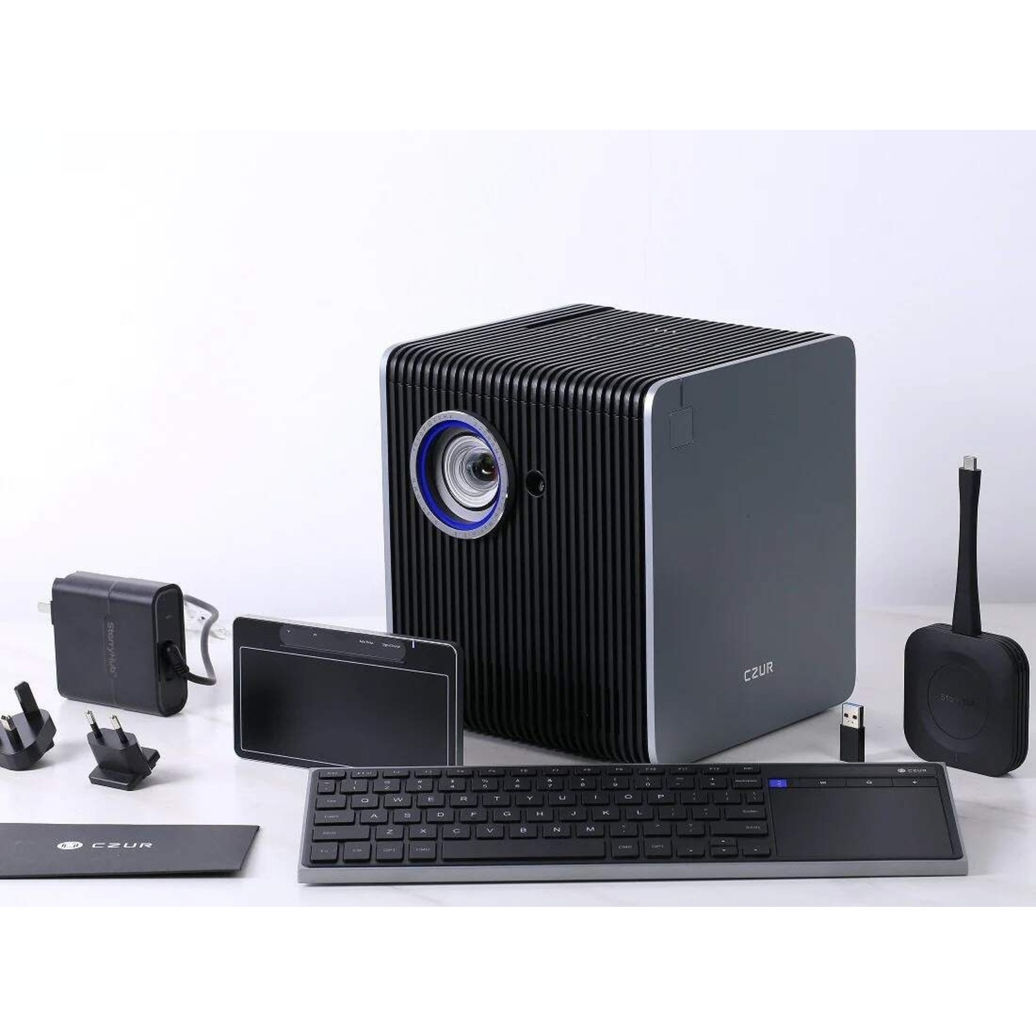Le dispositif présenté constitue une solution intégrée adaptée aux environnements professionnels nécessitant une projection visuelle et une communication collaborative. Ce Vidéo Projecteur Pour Bureau combine un système de projection, une caméra de conférence et un ensemble audio-microphones dans un format compact. L’ensemble permet d’assurer des réunions hybrides, des présentations et des échanges collaboratifs avec une gestion centralisée des fonctions. L’architecture tout-en-un repose sur une conception pensée pour simplifier l’installation et l’utilisation au quotidien.