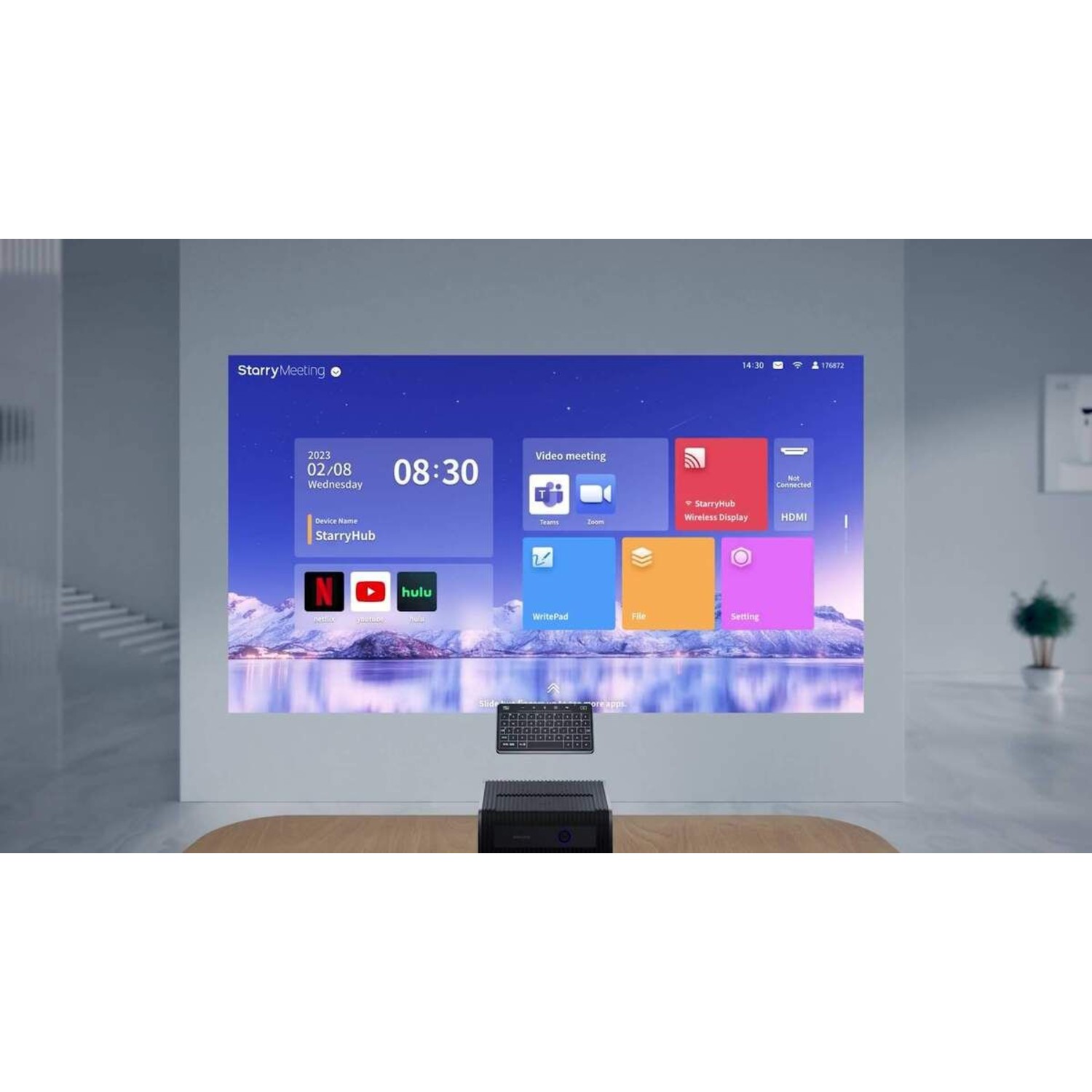 Le système repose sur une technologie d’affichage LED, intégrée dans une architecture combinant projection, captation vidéo et traitement audio. Cette conception regroupe plusieurs modules dans un seul appareil, incluant un projecteur, une caméra et un système de microphones. L’ensemble fonctionne via une plateforme intégrée compatible avec différents logiciels de réunion. L’intégration matérielle permet une centralisation des fonctions sans périphériques additionnels complexes.