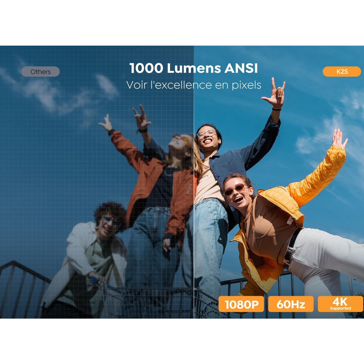 Notre système de projection repose sur une résolution native 1920 x 1080 (Full HD) avec une compatibilité des contenus 4K 60 Hz. Le traitement d’image optimise les détails, les textures et les contrastes pour un rendu précis sur grand écran. La prise en charge des formats haute définition améliore la fluidité des vidéos et des jeux. Cette architecture permet une projection allant jusqu’à 200 pouces avec une netteté constante.