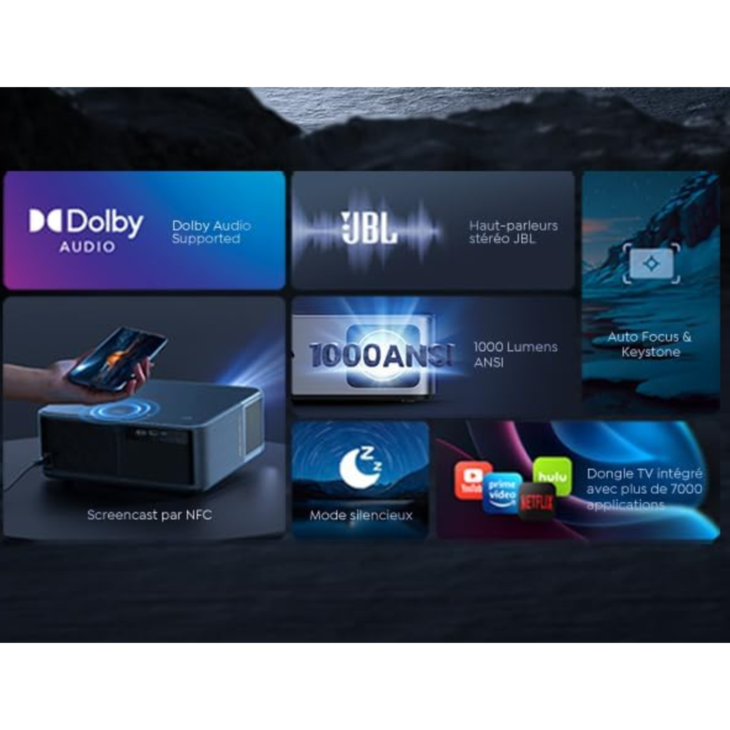 Projecteur Home Cinéma 4K Google TV 11.0 avec Son JBL 20W, WiFi 6 et Autofocus