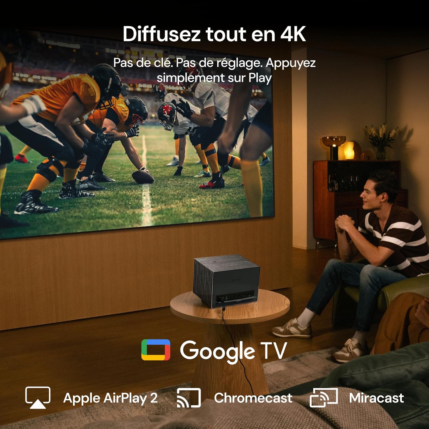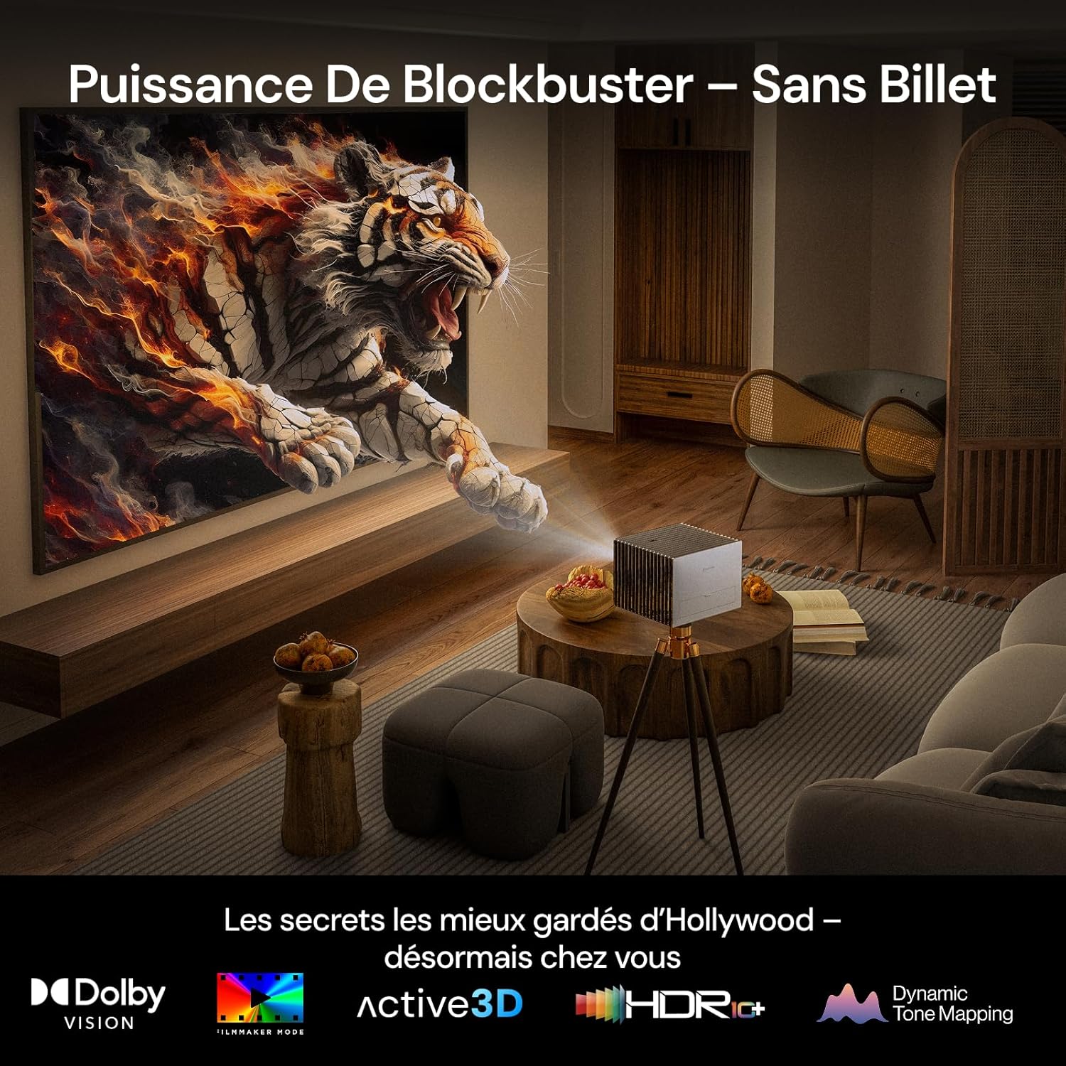 L’appareil délivre une résolution 4K native de 3840 x 2160 pixels pour une netteté constante sur toute la surface de projection. La technologie AI Super Resolution analyse chaque image pour affiner les détails et optimiser la clarté en temps réel. Le support du format HDR10+ avec Dynamic Tone Mapping garantit une gestion rigoureuse de la dynamique lumineuse scène par scène.