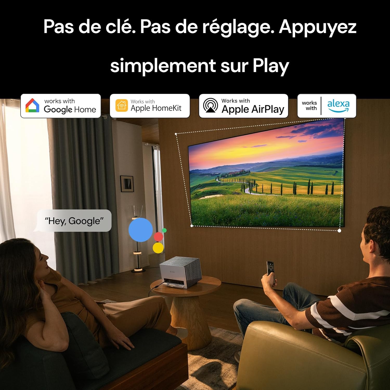 L’interface logicielle Google TV donne accès aux applications de streaming comme Netflix ou Disney+ directement depuis l’appareil. La compatibilité avec Apple HomeKit, Alexa et Google Home permet une gestion domotique centralisée et une commande vocale efficace. Les ports HDMI et USB complètent les options de partage sans fil via AirPlay 2 et Chromecast intégrés.