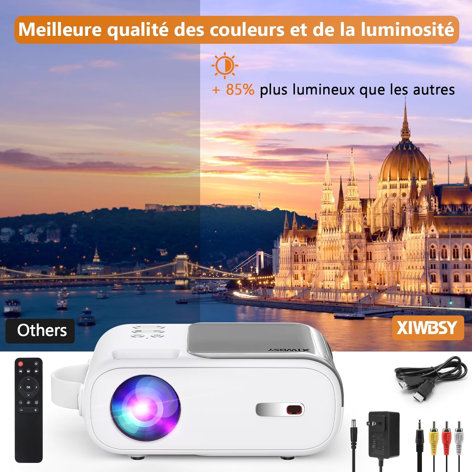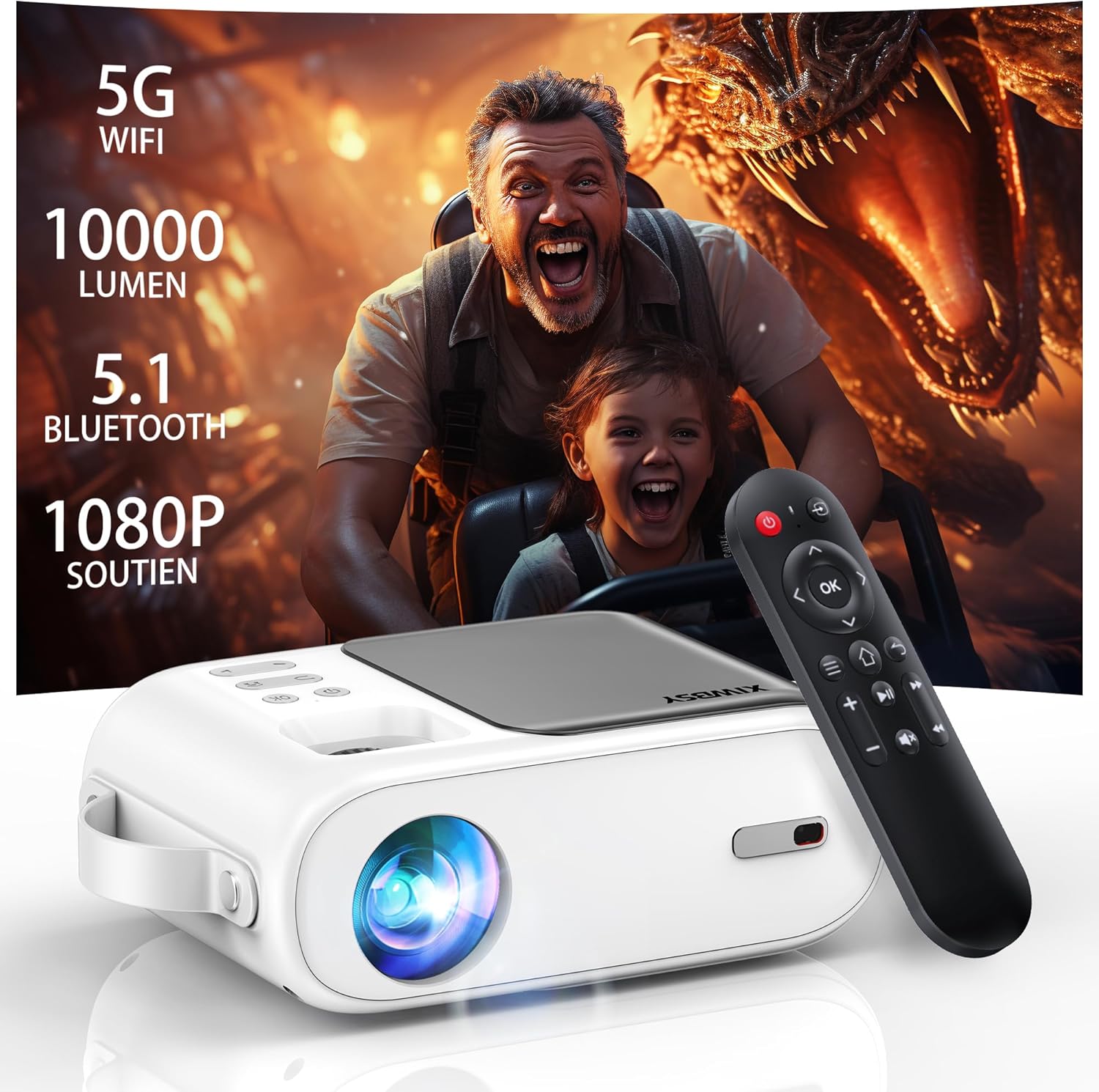 Ce projecteur portable offre une solution technique complète grâce à son contraste de 10000:1, sa luminosité de 9500 Lumens et sa gestion des réseaux 5G. L’intégration native de ce Vidéo Projecteur Wi-Fi Bluetooth dans votre configuration multimédia garantit une polyvalence maximale entre vos appareils mobiles et vos sources HDMI. Ses capacités de projection allant jusqu’à 200 pouces assurent une expérience visuelle immersive et détaillée.