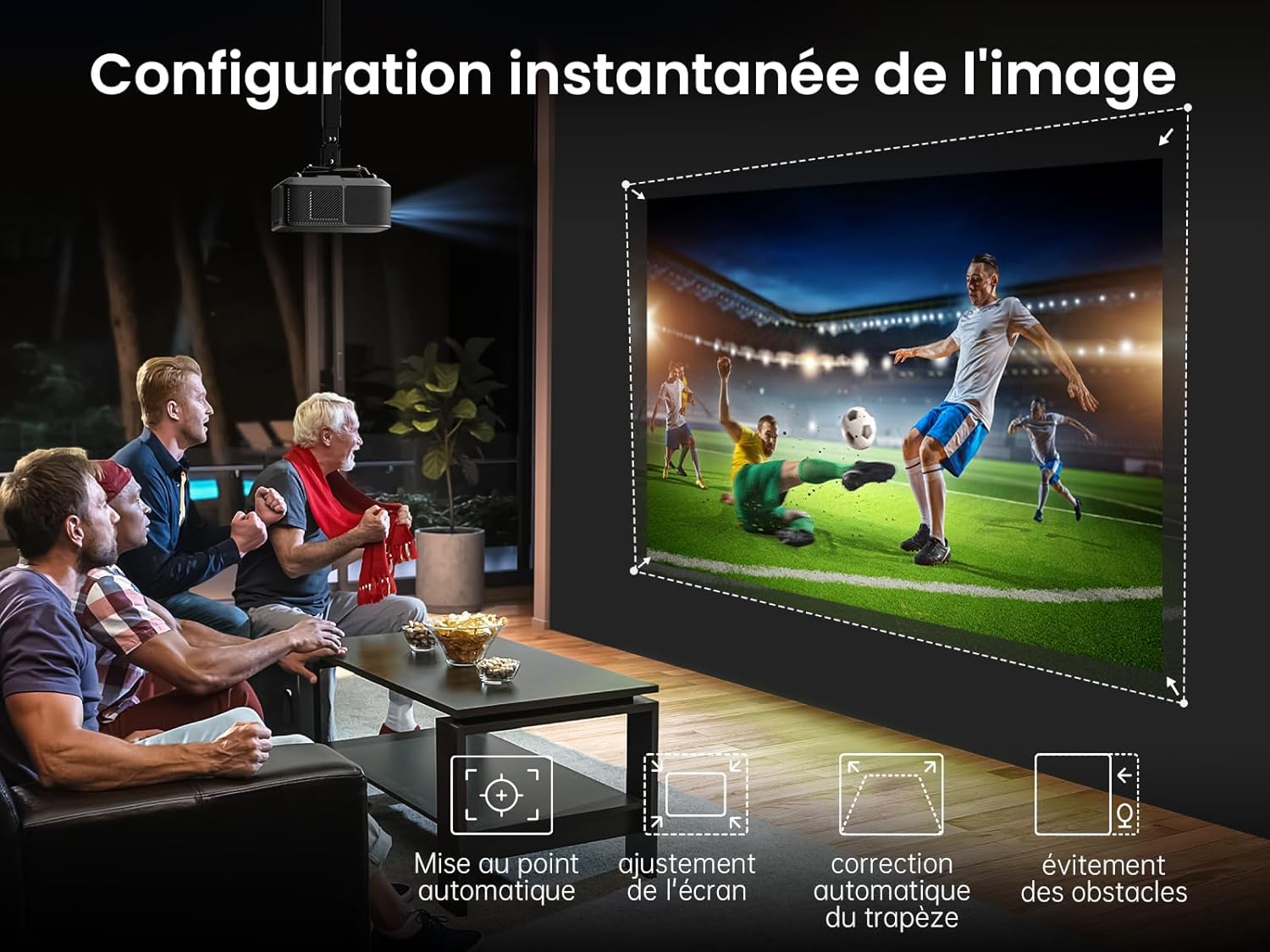 Notre système dispose d’une suite complète de réglages automatisés incluant la mise au point automatique et la correction trapézoïdale numérique. Un capteur frontal gère l’alignement automatique de l’écran et l’évitement d’obstacles en temps réel pour contourner les éléments muraux. L’algorithme ajuste la géométrie de l’image instantanément dès que l’appareil détecte un déplacement ou une inclinaison. Ces fonctions garantissent une image parfaitement rectangulaire sans intervention manuelle de l’utilisateur.