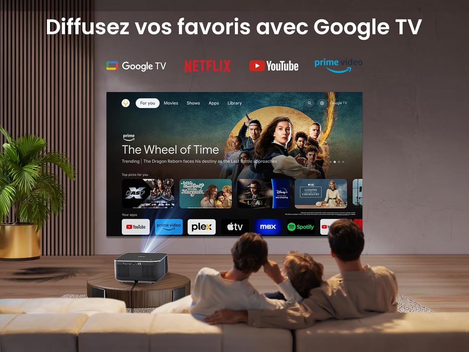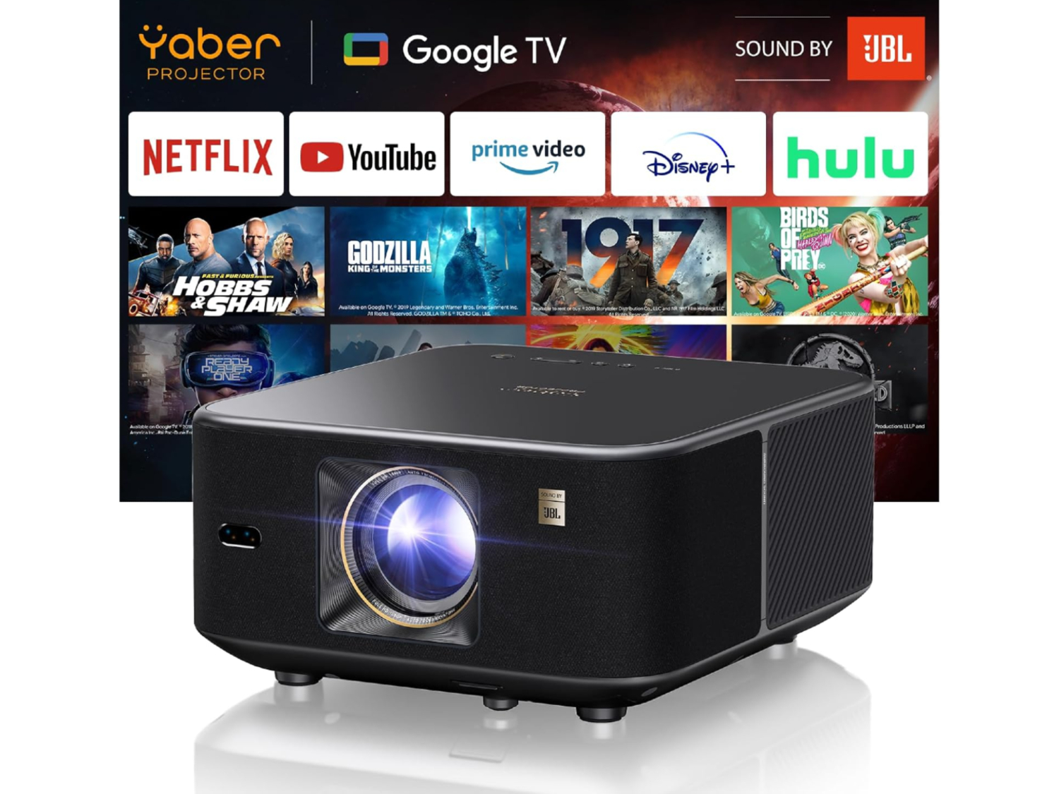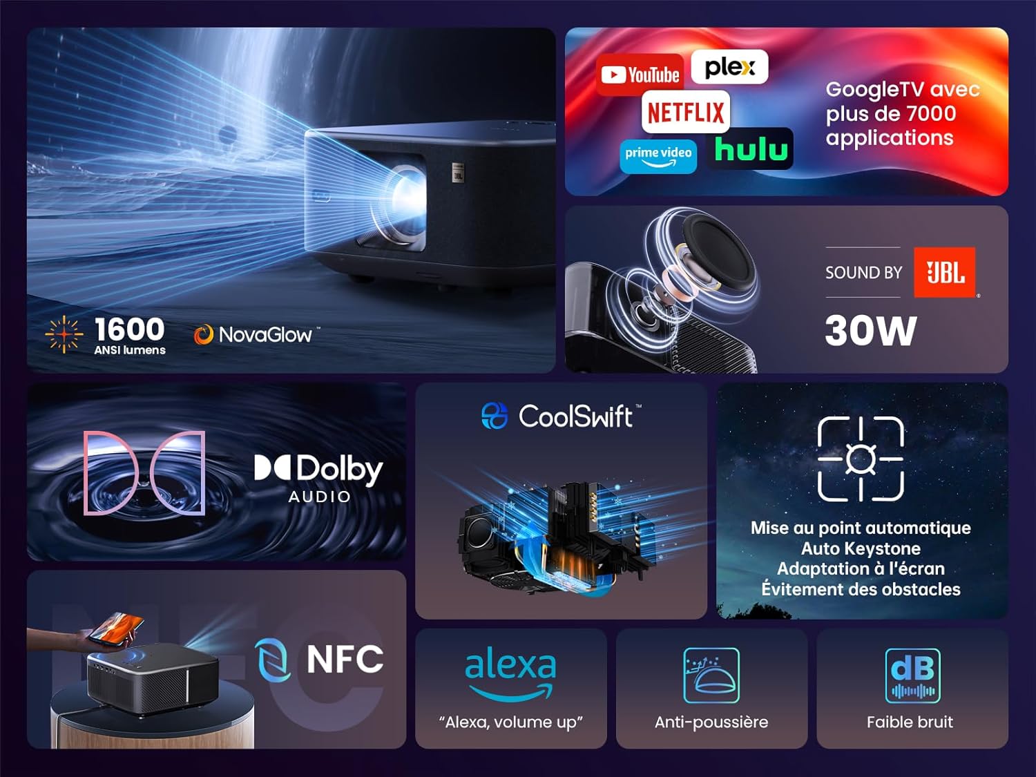 Vidéoprojecteur LED Full HD 1080p, 1600 ANSI Lumens, Google TV et Son JBL 30W