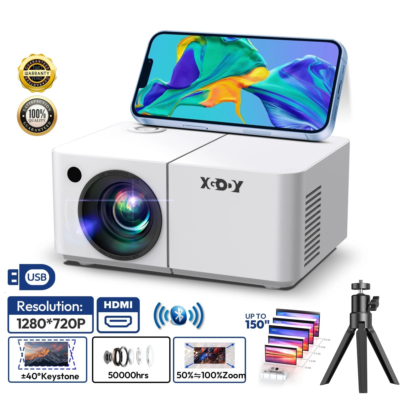 Notre solution de projection nomade intègre le système Android 12 pour un accès direct à plus de 8 000 applications multimédias. Ce modèle polyvalent offre une connectivité sans fil avancée pour faciliter le partage de contenus depuis vos appareils mobiles. En choisissant ce vidéoprojecteur 200€, vous profitez d’un équipement complet incluant un trépied pour une installation stable et rapide en toute circonstance.