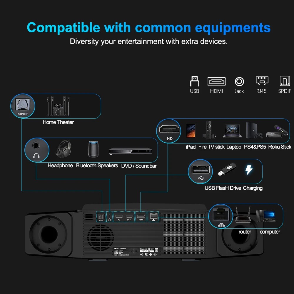 Vidéoprojecteur LCD Full HD 1080P avec Support 4K, 2600 Lumens et Google TV Intégré
