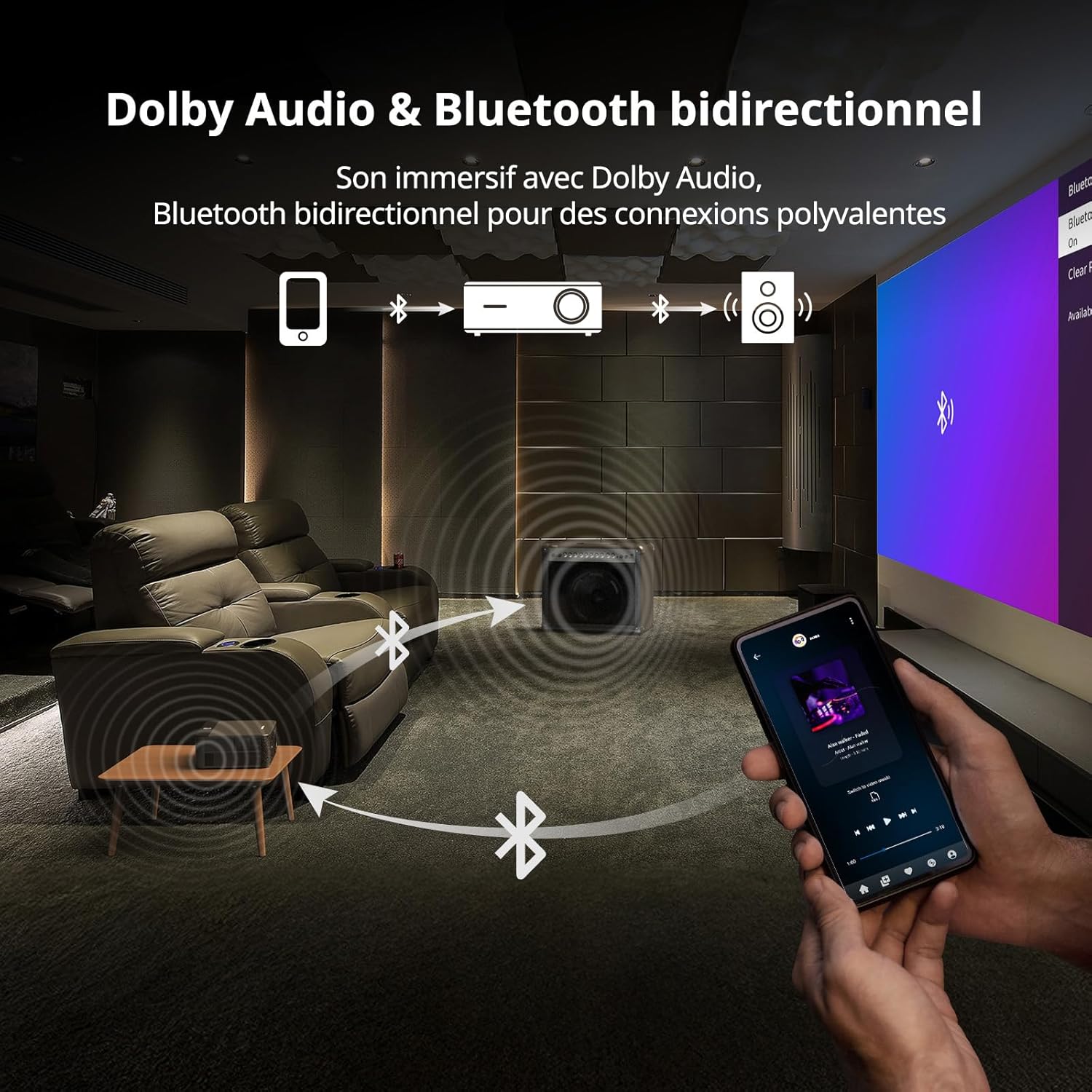 Notre projecteur intègre une licence officielle Netflix, Prime Video et YouTube pour une navigation stable et rapide. Le processeur interne décode le format 4K avec une résolution native Full HD 1080P pour une netteté constante. Le système Dolby Audio traite le signal sonore avec une fidélité numérique supérieure. Cette configuration logicielle évite l’utilisation de boîtiers externes pour vos sessions de visionnage.