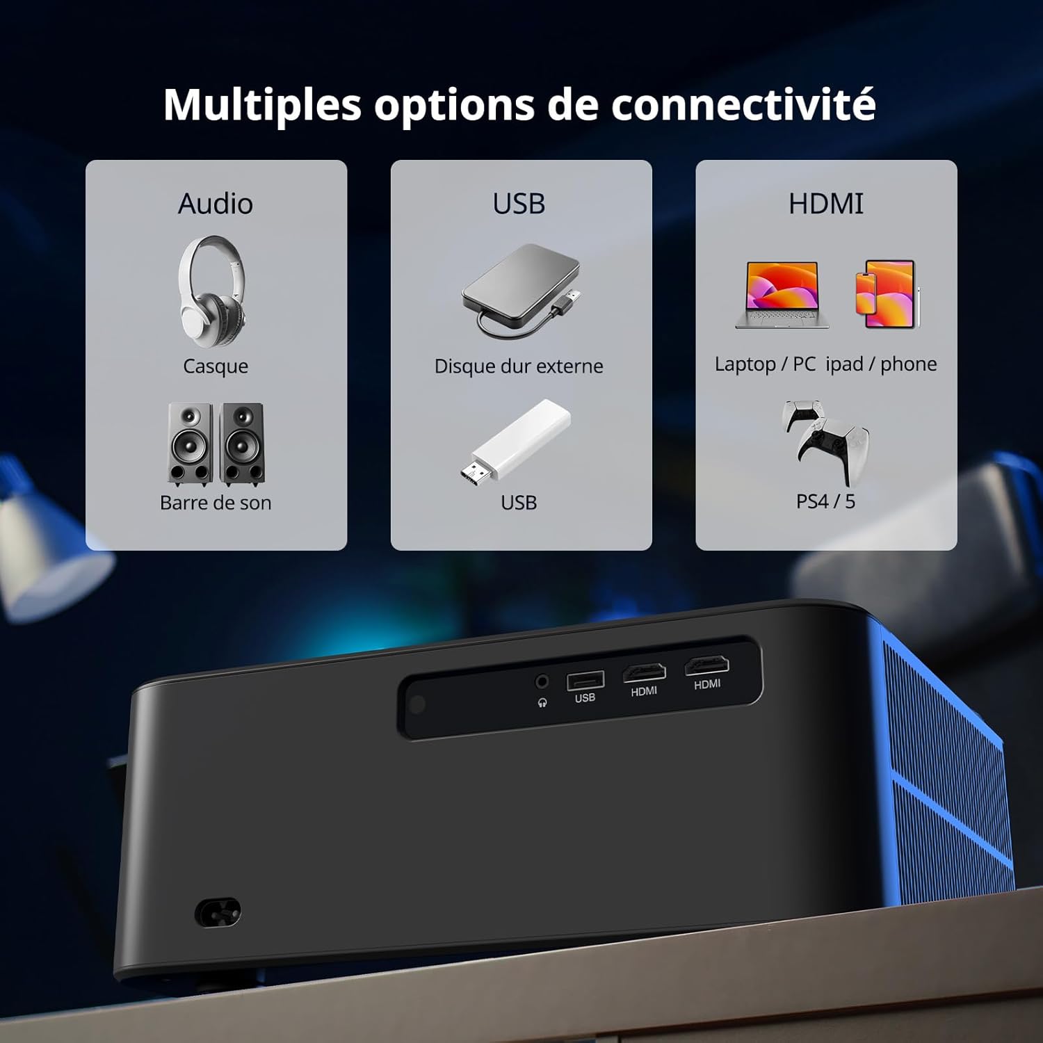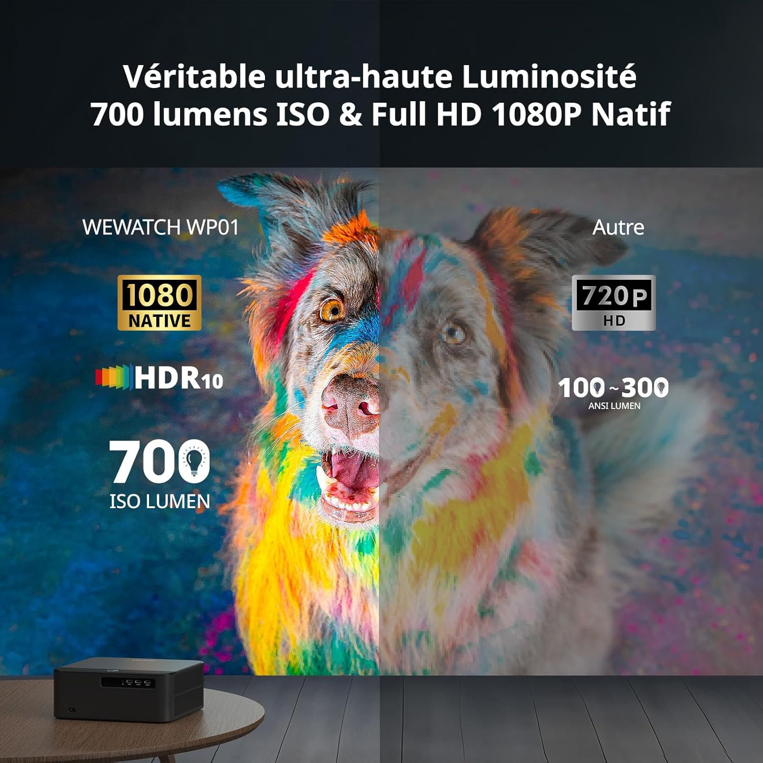 Le moteur optique délivre une puissance de 1200 ANSI Lumens, assurant une visibilité claire des détails même en environnement peu sombre. Le taux de contraste s’élève à 40000:1, ce qui renforce la profondeur des noirs et la vivacité des couleurs. La technologie LCD utilisée ici restitue chaque nuance avec précision sur une diagonale allant jusqu’à 300 pouces. Notre bloc optique scellé préserve la pureté de la source lumineuse sur le long terme.