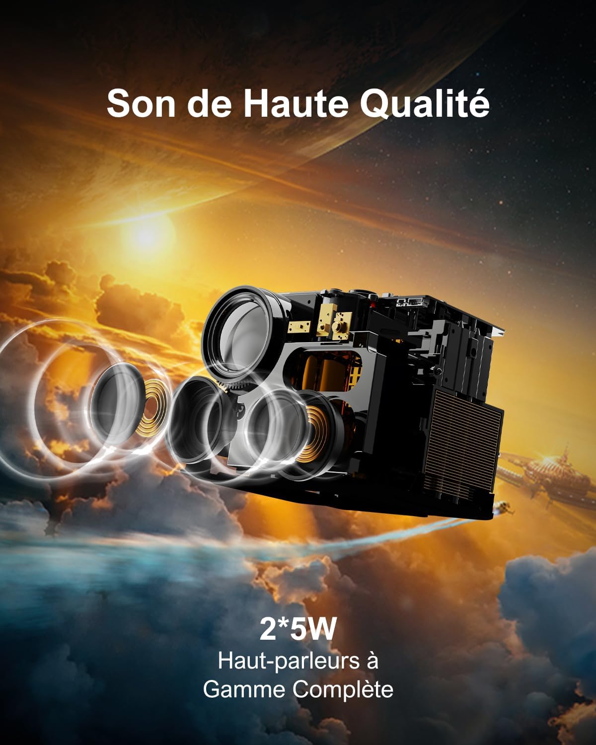 Ce modèle compact offre une résolution Full HD native, une luminosité de 600 ANSI Lumens et un système audio Dolby performant. Notre Vidéoprojecteur 4K Android TV garantit une installation flexible grâce à son support rotatif et sa correction automatique. Sa structure optique fermée assure une durabilité optimale pour vos sessions de divertissement à domicile.