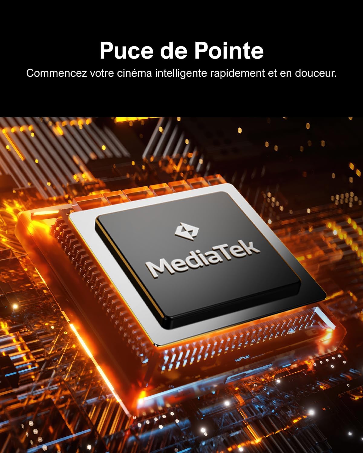 Notre Vidéoprojecteur 4K Android TV exploite une licence officielle permettant l’exécution native des services de streaming sans périphériques externes. Le processeur gère le décodage des contenus 4K tout en conservant une fluidité constante grâce aux 2 Go de RAM intégrés. Cette architecture logicielle assure une compatibilité logicielle étendue avec les dernières mises à jour du Play Store. La mémoire de 16 Go autorise le stockage local de multiples applications gourmandes en ressources.