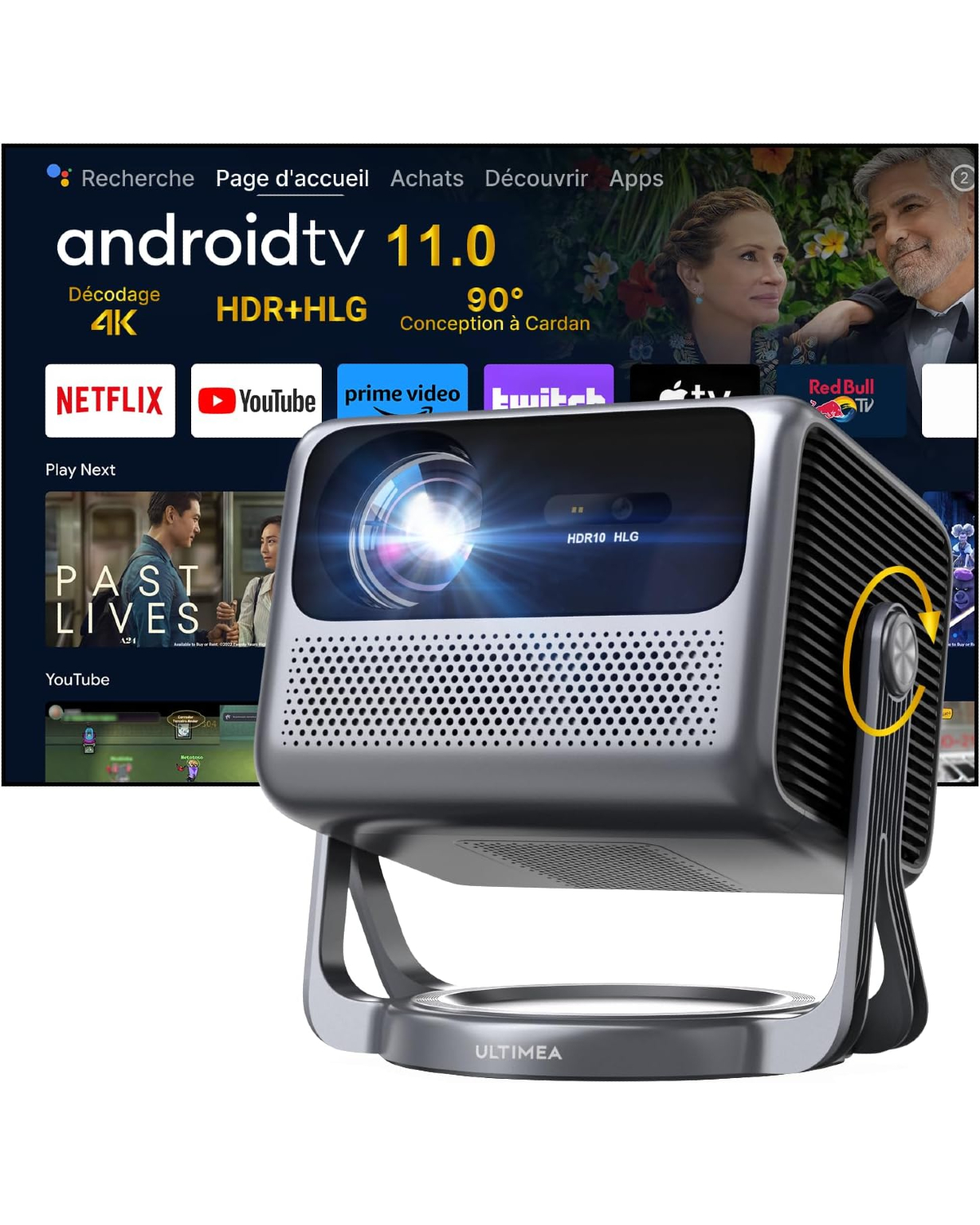 Vidéoprojecteur LED Full HD 1080P avec Support 4K, 600 Lumens ANSI et Android TV 11.0