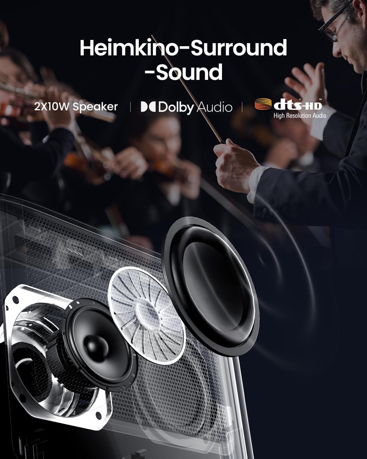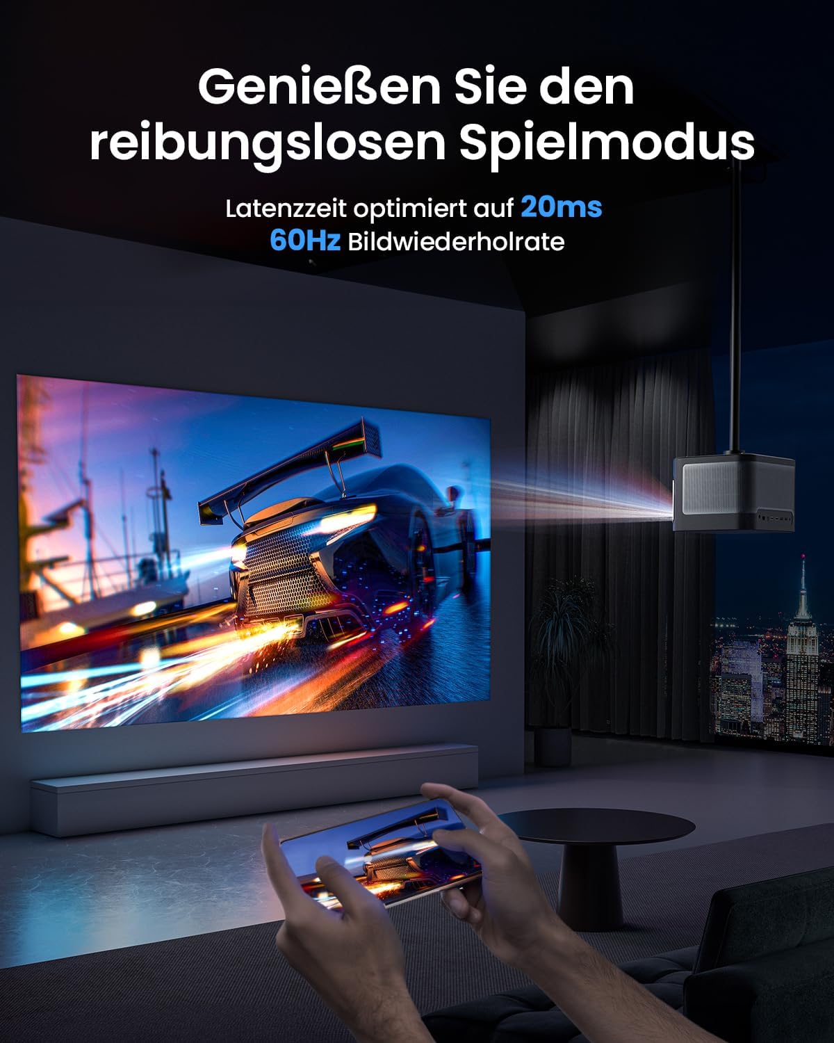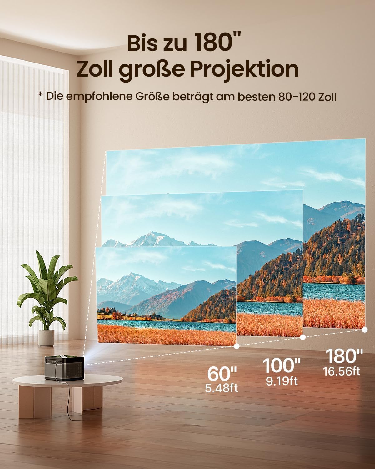 Vidéoprojecteur DLP 4K Natif 1800 ISO Lumens avec Stockage 128 Go pour Home Cinéma