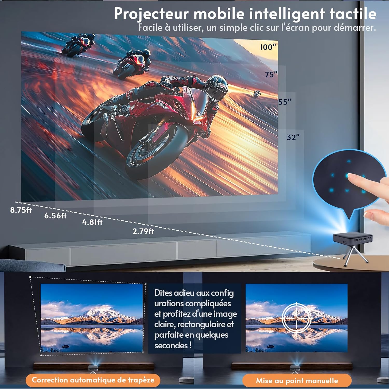 Notre projecteur portable offre une polyvalence rare grâce à sa batterie intégrée et sa compatibilité avec les flux haute définition sur une image de 100 pouces. Ce vidéoprojecteur 4K DLP est l’outil technique idéal pour ceux qui recherchent une compacité extrême alliée à une connectique sans fil exhaustive. Ses capacités de courte focale et sa protection contre la poussière garantissent une durabilité optimale pour un usage quotidien.
