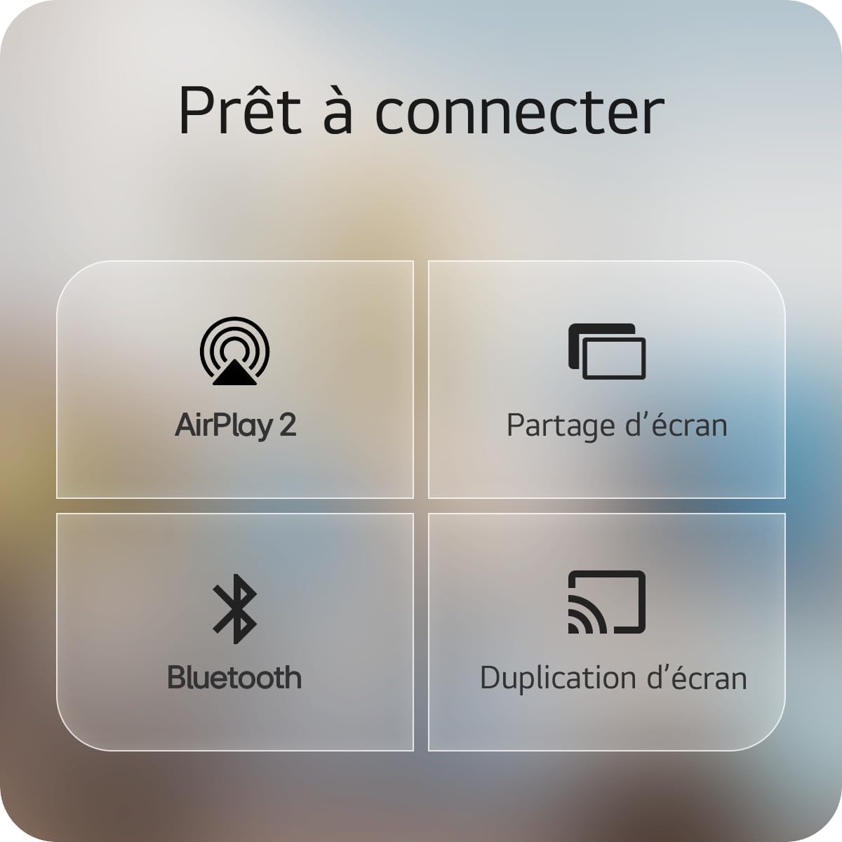 Notre interface inclut des ports HDMI et USB Type-C, ce dernier étant compatible avec les batteries externes pour un usage nomade. Le système LG Smart webOS 6.0 donne accès directement aux applications de streaming via une connexion réseau. Le partage d’écran depuis un ordinateur portable ou un appareil mobile s’effectue sans câbles additionnels.