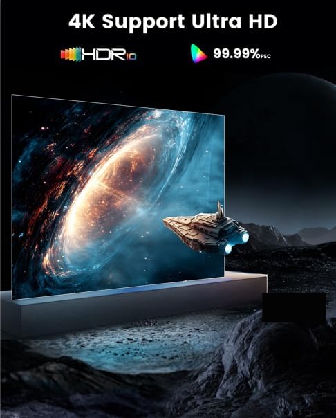 Notre appareil dispose d’une résolution native Full HD 1920 x 1080 pixels pour une netteté constante sur toute la surface de projection. Le processeur interne assure le décodage et le support des flux 3840 x 2160 pixels pour garantir la lecture de vos contenus ultra haute définition. La technologie HDR10 optimise les zones sombres et les hautes lumières pour un rendu visuel riche.