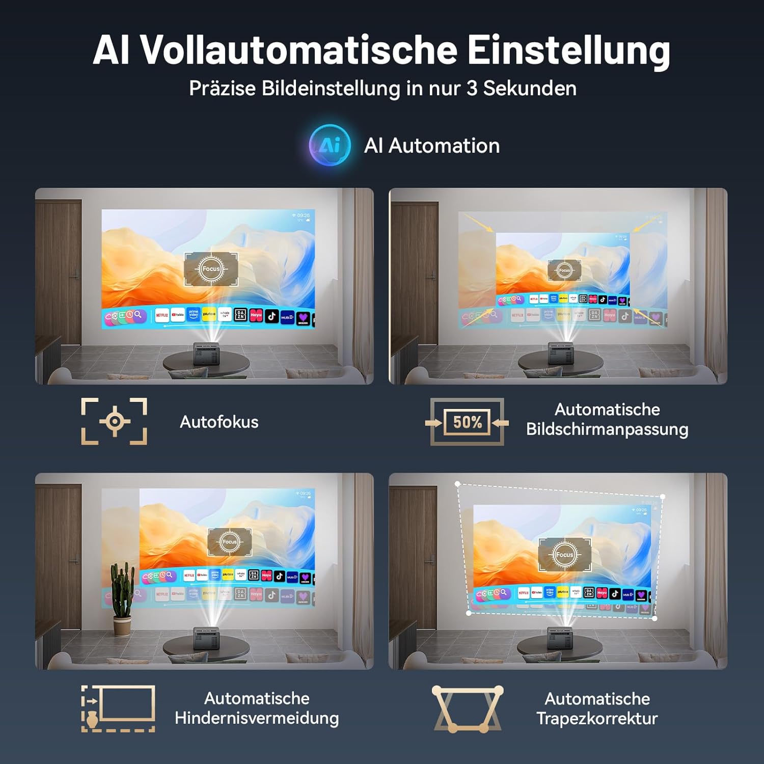 Grâce à sa résolution native 1080p et son système Android, cet appareil centralise vos divertissements avec une luminosité de 900 ANSI. La mise au point automatisée et le WiFi 6 font de ce Vidéoprojecteur 4K Salon un choix technique fiable. Vous profitez d’une image nette et d’une protection totale contre la poussière.